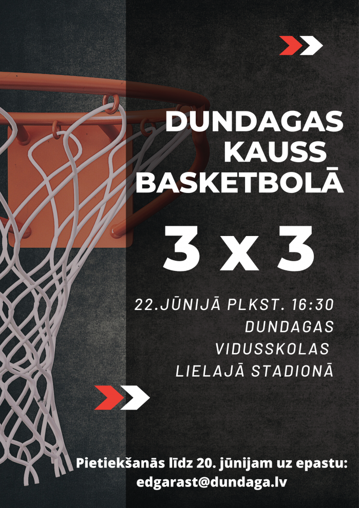 22. jūnijā plkst. 16.30 Dundagas vidusskolas lielajā stadionā norisināsies pirmssvētku basketbola turnīrs «Dundagas kauss 3×3».