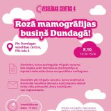8. oktobrī plkst 10.30–15.00 Dundagā pie Veselības centra Pils ielā 6 plāno ierasties «Veselības centrs 4» rozā mobilā mamogrāfa autobusiņš. Aicinām sievietes izmeklēt krūtis!
