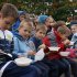 Pēc kopīgās fotografēšanās sākušās sportiskās aktivitātes. Dz.