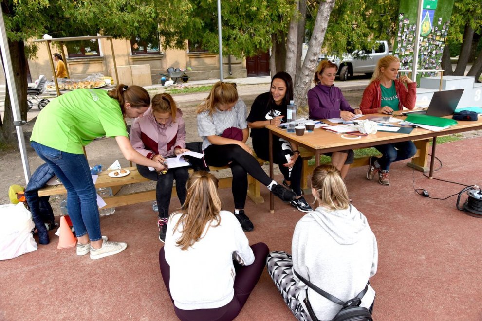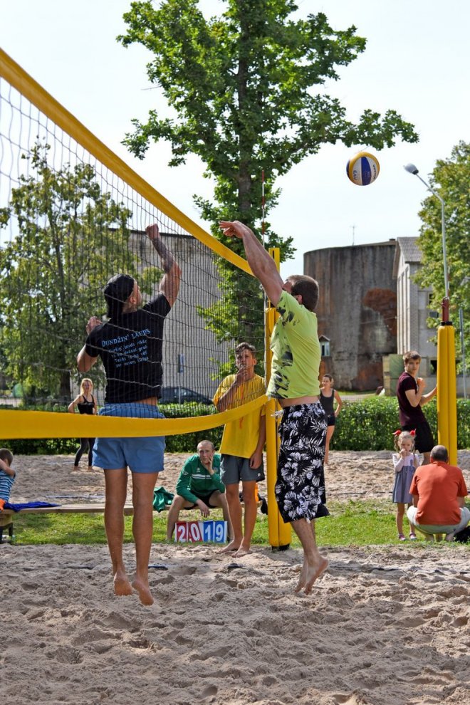 Pēc domes priekšsēdētāja runas, komandas tikās volejbola laukumos — iespēja bija spēlēt gan sievietēm, gan vīriešiem. Sieviešu komandā labākās bija Andžela Lepere, Anete Alkšbirze un Katrīna Mierkalne no komandas «13. bloks», uzvarot visas kopvērtējuma spēles. Par trīs punktiem mazāk otro vietu ieguva komandas «Dundžiņ lauds» pārstāves — Madara Rudgale, Kristīne Skarbiniece un Alise Dozberga, savukārt trešo vietu ieņēma Daniela Ozollapa, Lāsma Freimute un Vineta Jansone no komandas «Agaris».