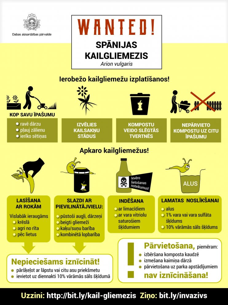 invazīvo Spānijas kailgliemežu izplatību ar ķīmisko metodi — kaisot