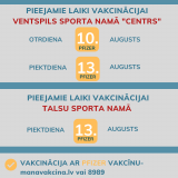 Tuvākie laiki vakcinācijai Ventspils vai Talsu sporta namā 09.08.2021. plkst. 18.06