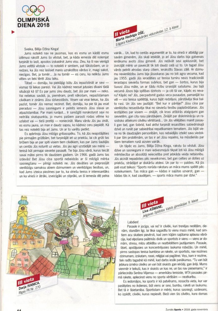 Žurnālā «Sports» 2018. gada novembra numurā publicēts Daiņa Caunes raksts «Vēstule tenisa zvaigznei».