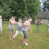Pieaugušie spēlēja volejbolu, un atbilstoši laikapstākļiem šo spēli varēja dēvēt par «volejbolu lietū». Šautriņas meta gan pieaugušie, gan bērni. Kas gribēja, tas varēja «pāriet purvu» ar aizsietām acīm (sk. foto). Bija jautri dalībniekiem un skatītājiem. Bērni kopā ar vecākiem maldījās labirinta līkločos, meklēja un vāca attēlos redzamo augu lapas un ziedus, meta bumbiņas šūpolēs iekārtajos riņķos, leca ar lecamauklu, meta mērķī riņķus.