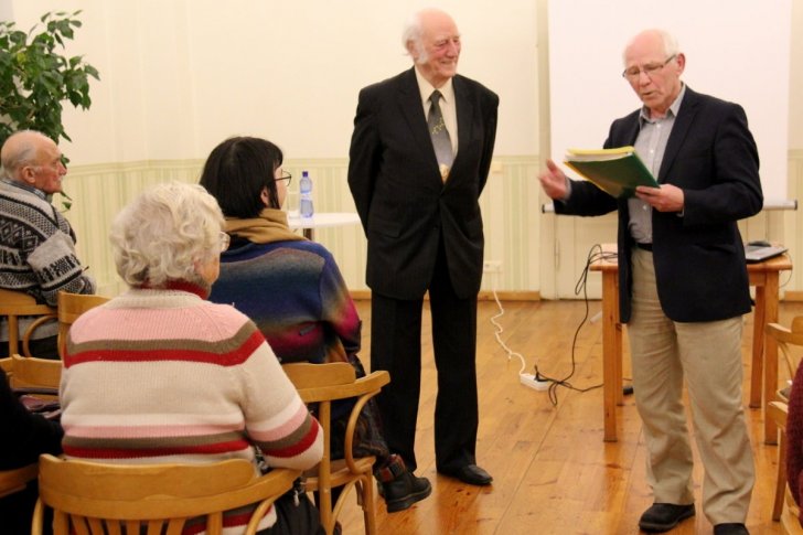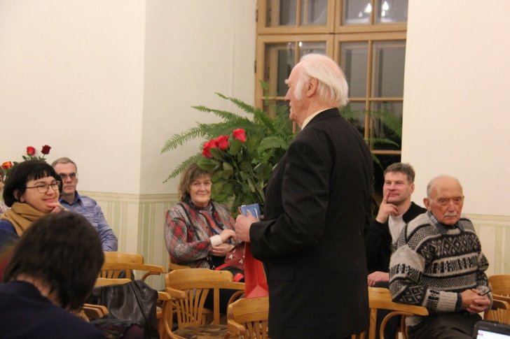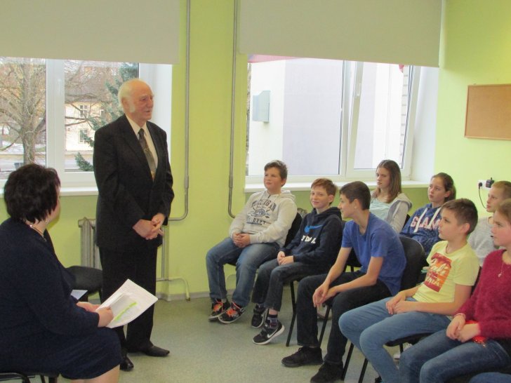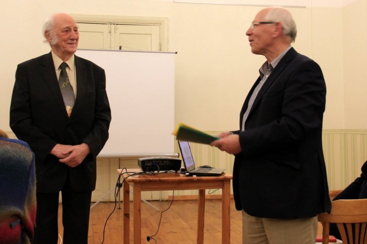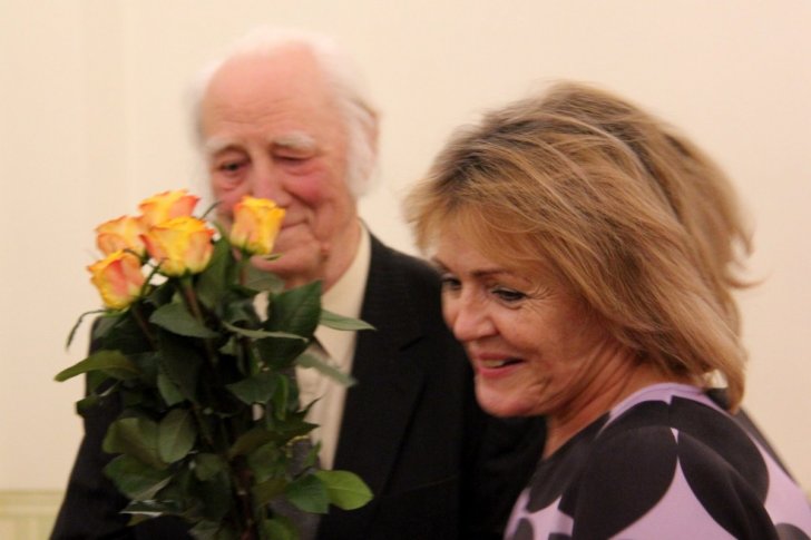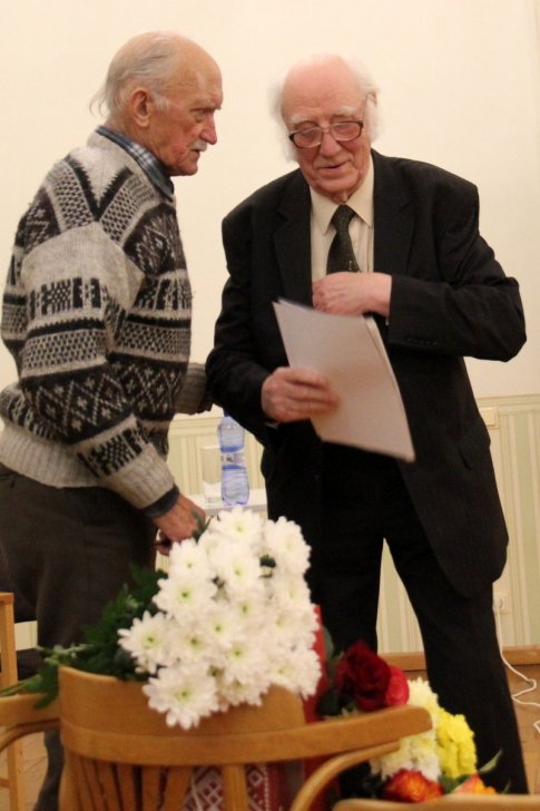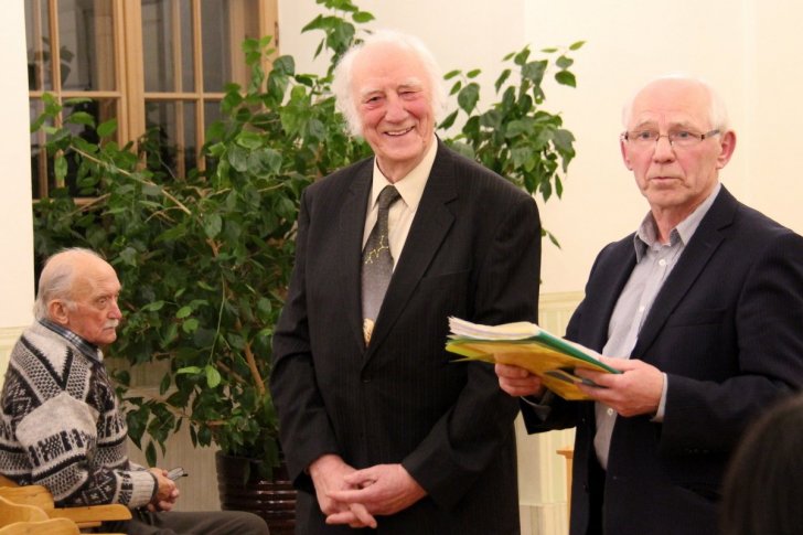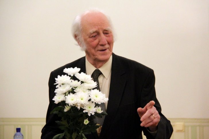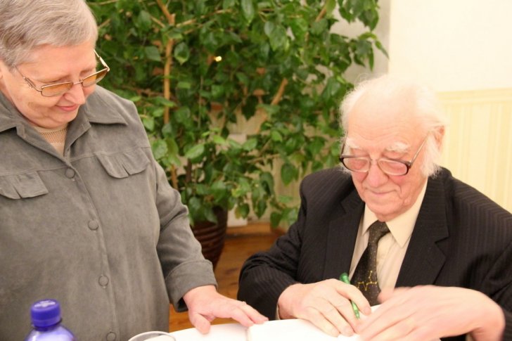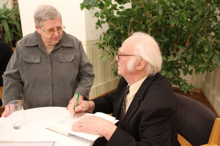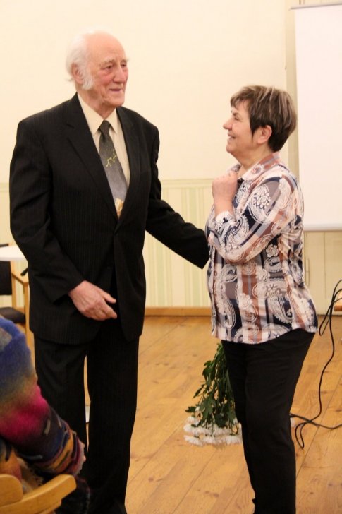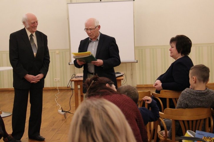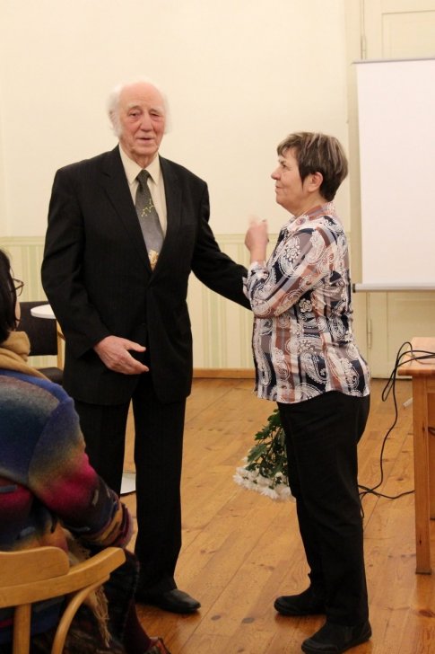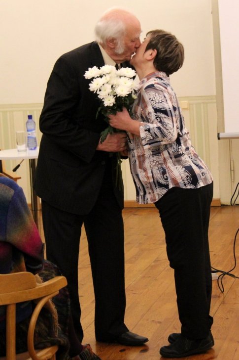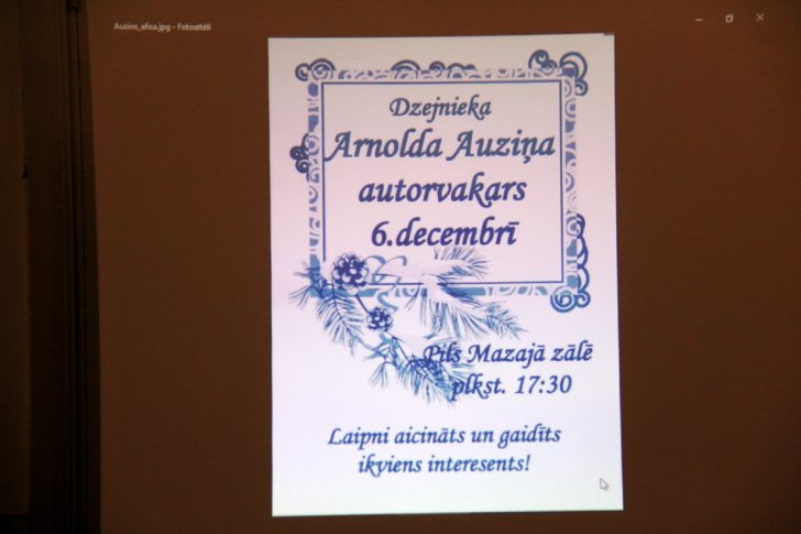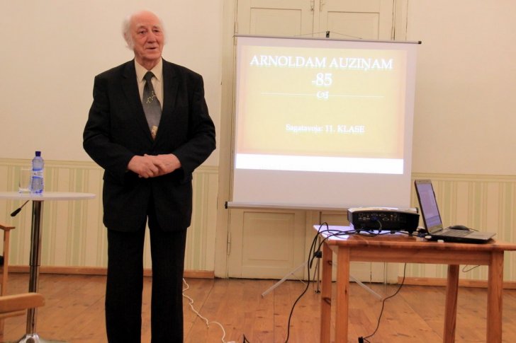Nosvinējis 85. dzimšanas dienu Rīgā, dzejnieks un prozaiķis Arnolds Auziņš 6. XII viesojās Dundagas vidusskolā un pilī.