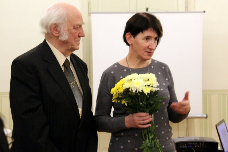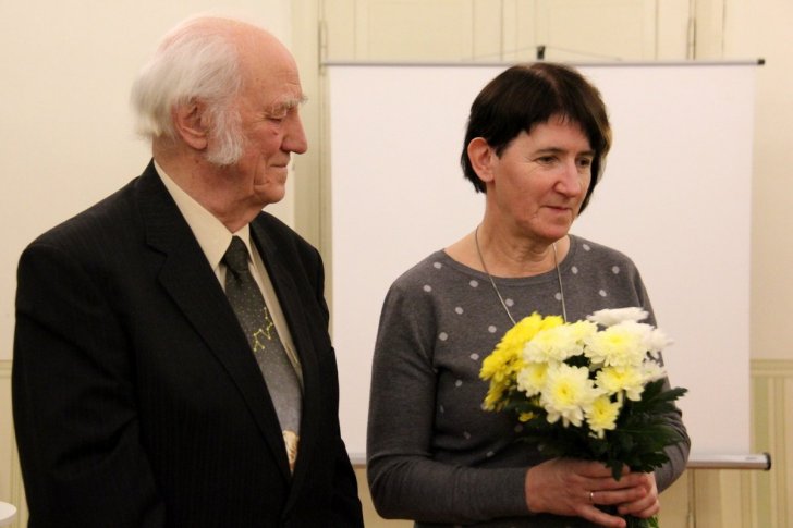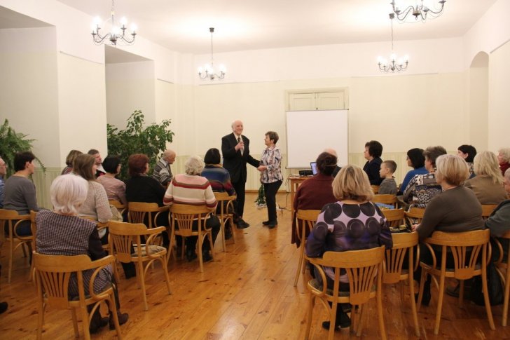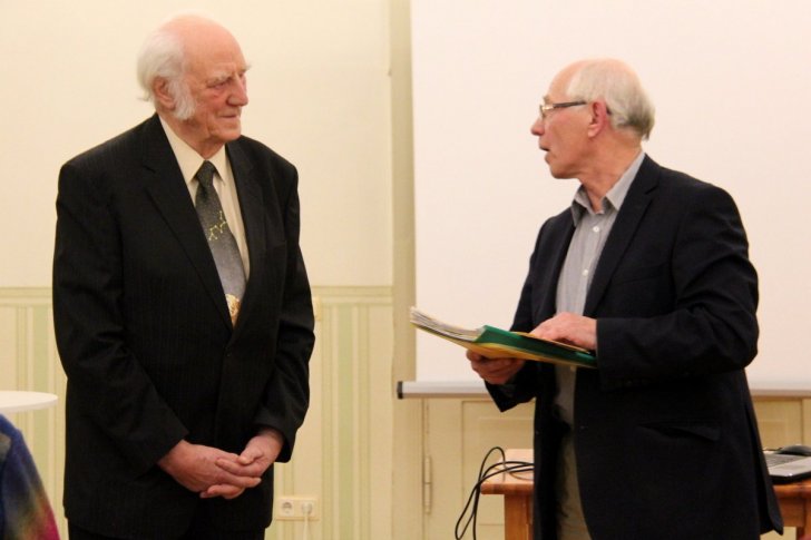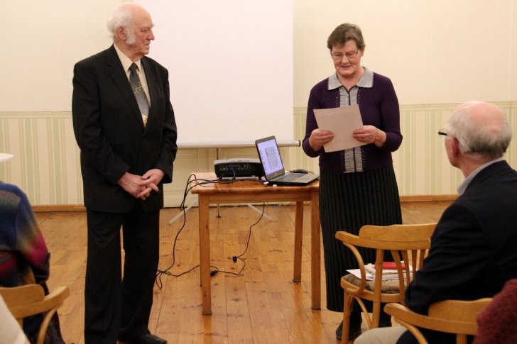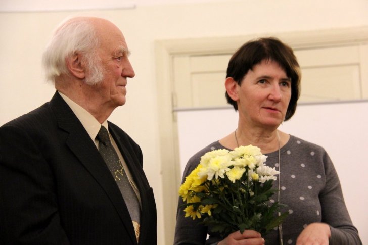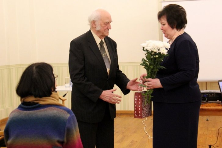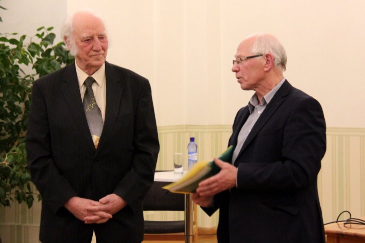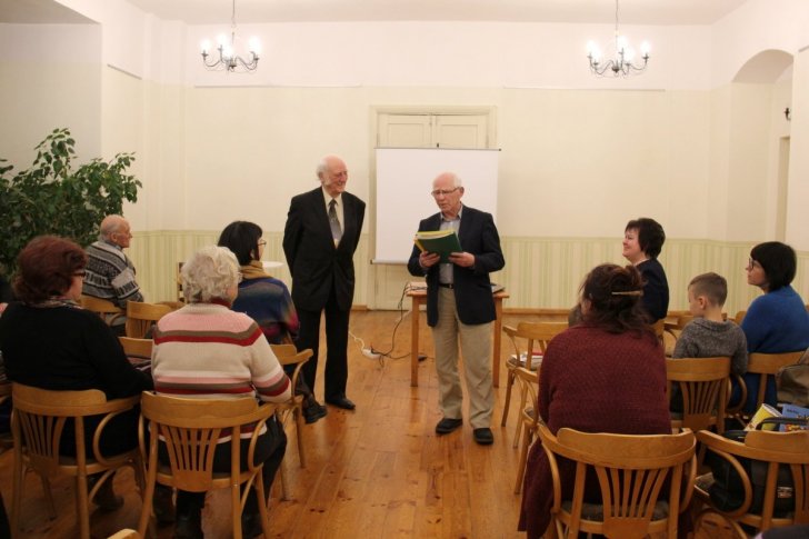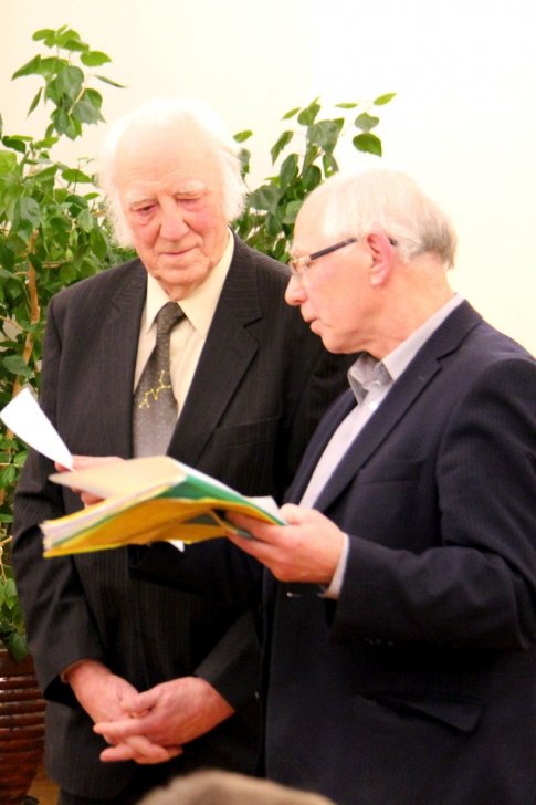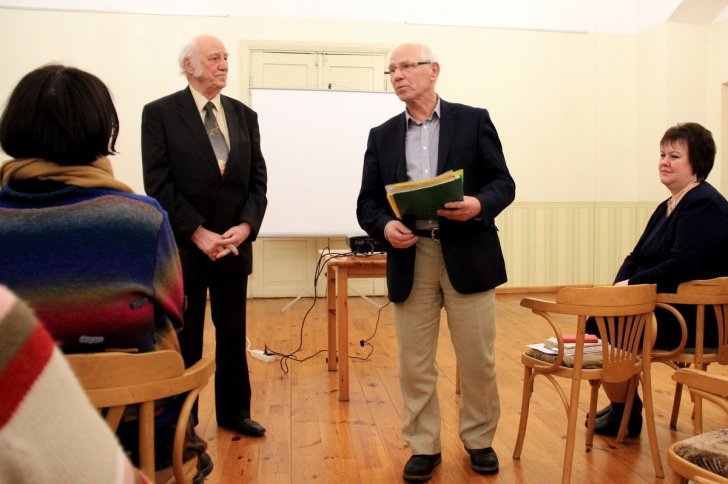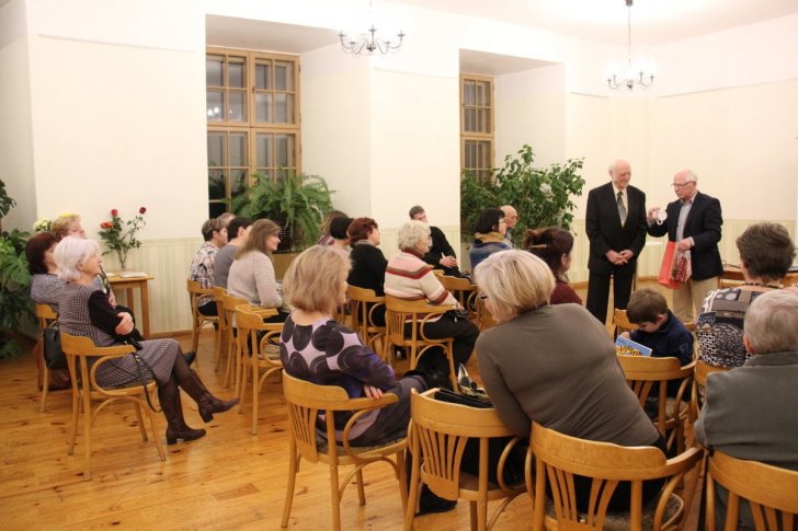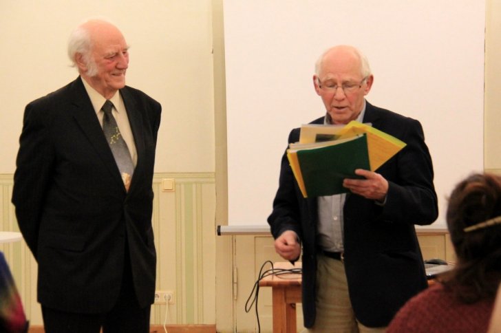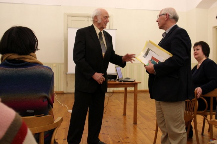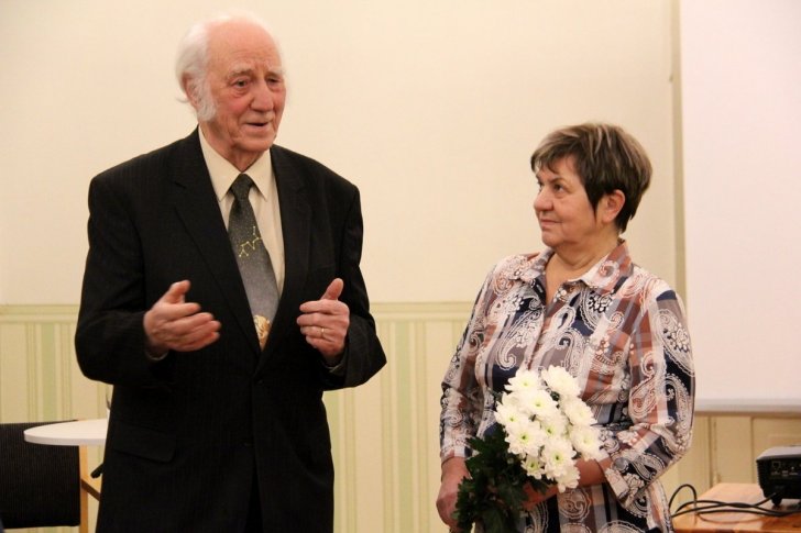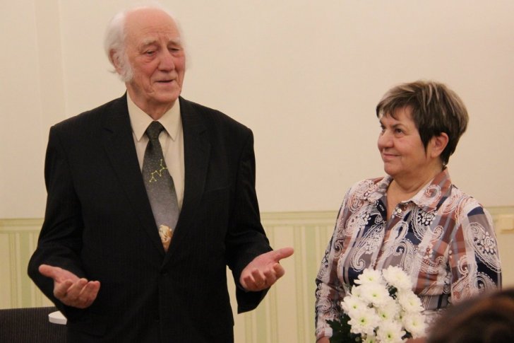 Nosvinējis 85. dzimšanas dienu Rīgā, dzejnieks un prozaiķis Arnolds Auziņš 6. XII viesojās Dundagas vidusskolā un pilī.