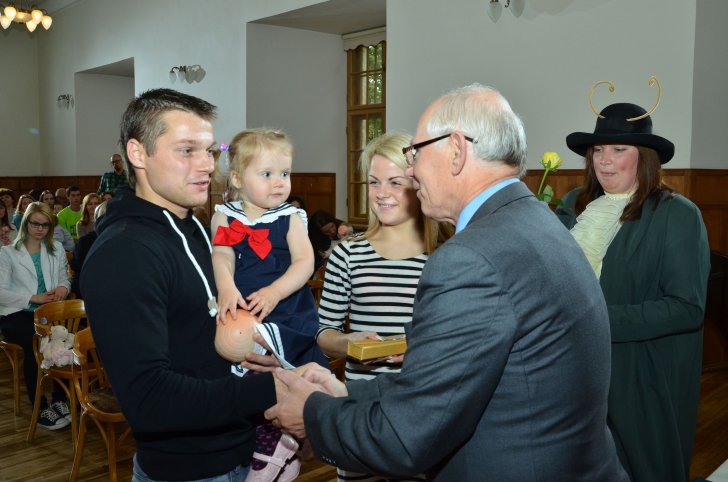 sudraba karotīšu pasniegšanu mūsu novadā dzimušajiem bērniņiem.