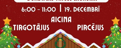 Piektdien, 19. decembrī, jau no plkst. 6.00 līdz 11.00, aicinām visus uz Dundagas tirgus laukumu, Pils ielā 3, Dundagā. Nāciet satikt gan tirgotājus, gan pircējus, uzburt Ziemassvētku prieku un atrast savas svētku dāvanas un gardumus svētku galdam!