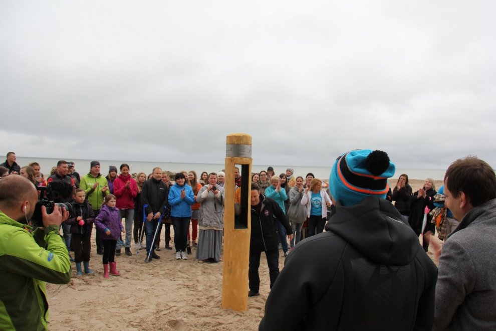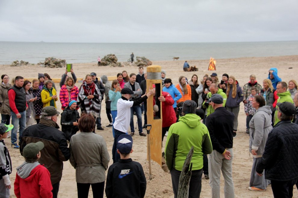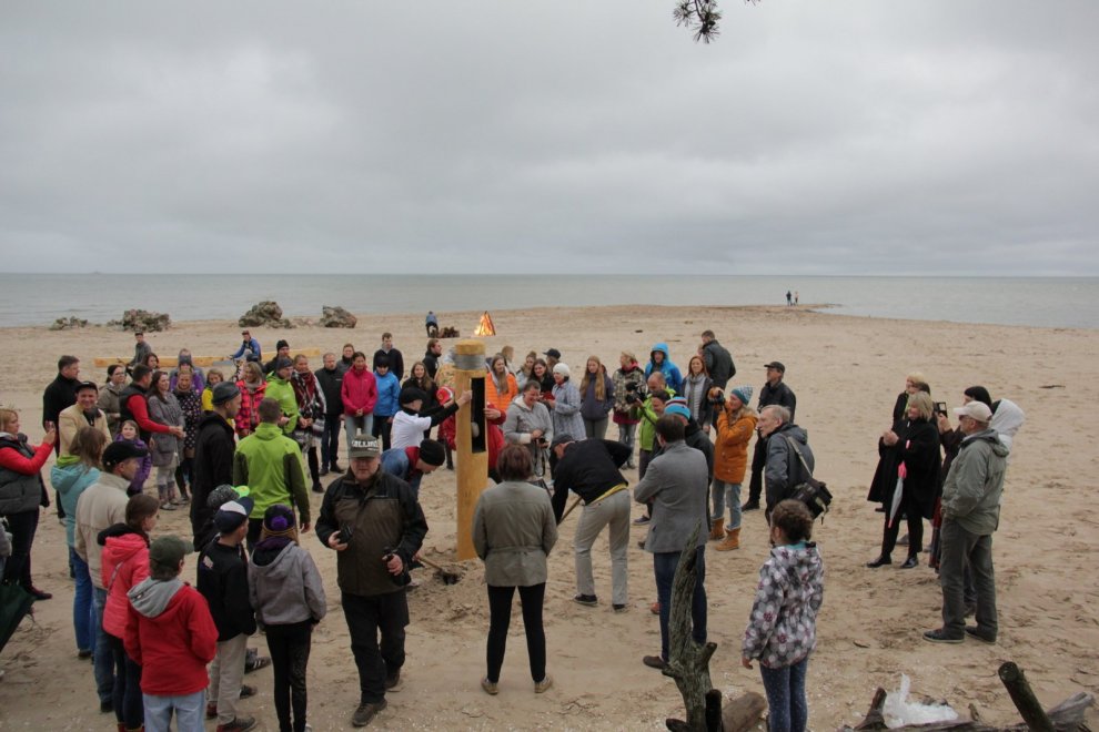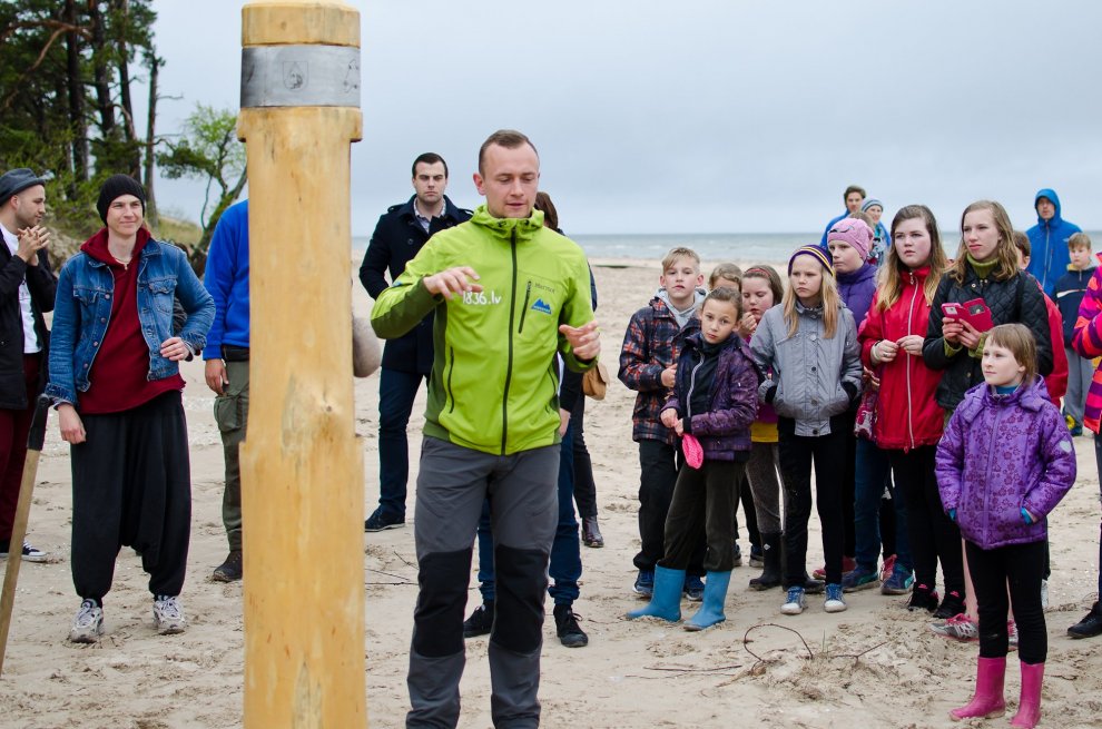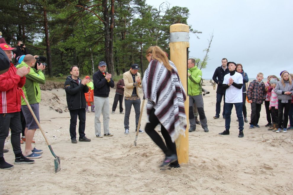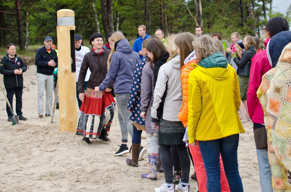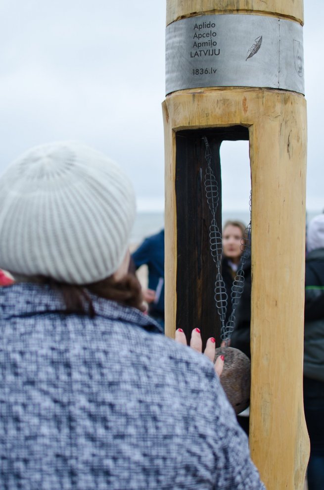 Piedaloties Imanta Ziedoņa fondam «Viegli» un draugiem, tostarp SIA «Kolkasrags» direktoram Jānim Dambītim, daudziem kolciniekiem un viesiem, Kolkasraga liedagā septiņos pēcpusdienā ar daudzu roku piepalīdzību zemē nostiprināja stabu, uz kura ir rakstīts «Aplido, apceļo, apmīļo Latviju» un skaitlis 1836, kas ir Latvijas robežlīnijas kopgarums.