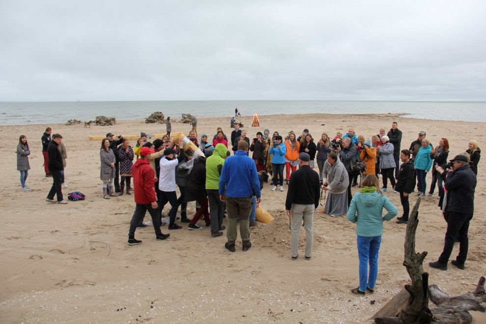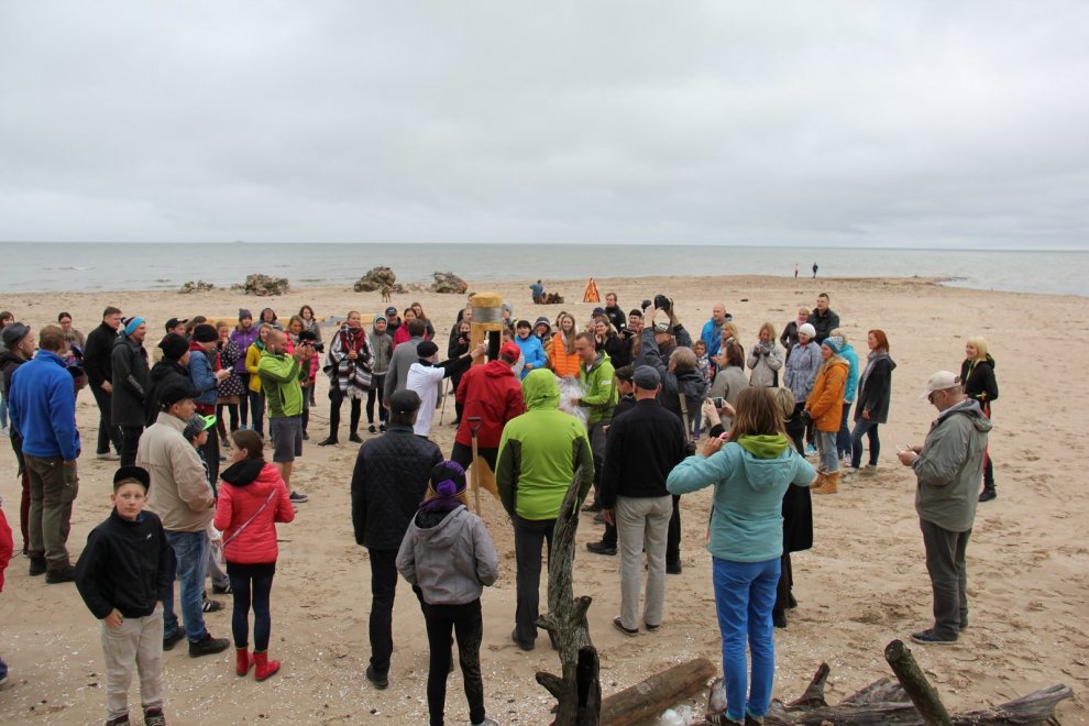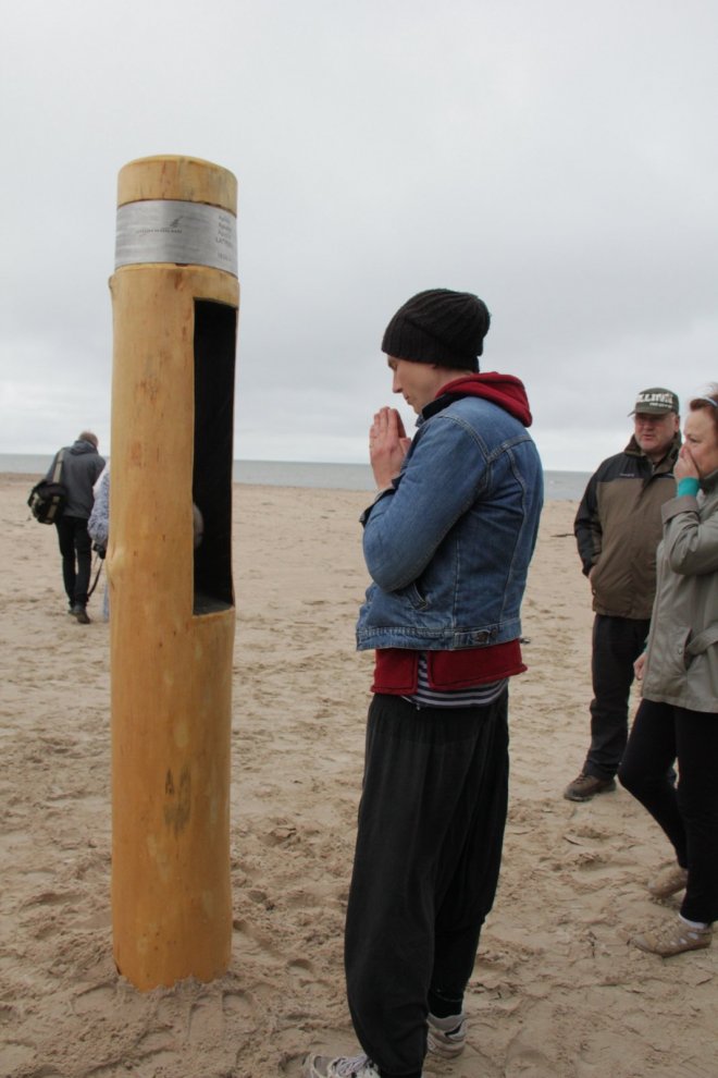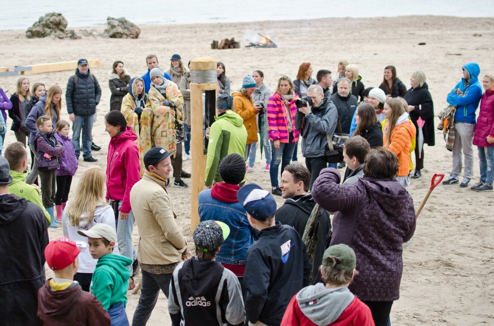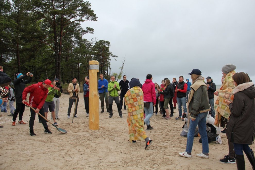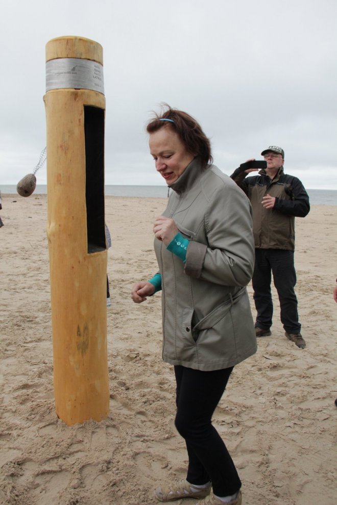 Piedaloties Imanta Ziedoņa fondam «Viegli» un draugiem, tostarp SIA «Kolkasrags» direktoram Jānim Dambītim, daudziem kolciniekiem un viesiem, Kolkasraga liedagā septiņos pēcpusdienā ar daudzu roku piepalīdzību zemē nostiprināja stabu, uz kura ir rakstīts «Aplido, apceļo, apmīļo Latviju» un skaitlis 1836, kas ir Latvijas robežlīnijas kopgarums.