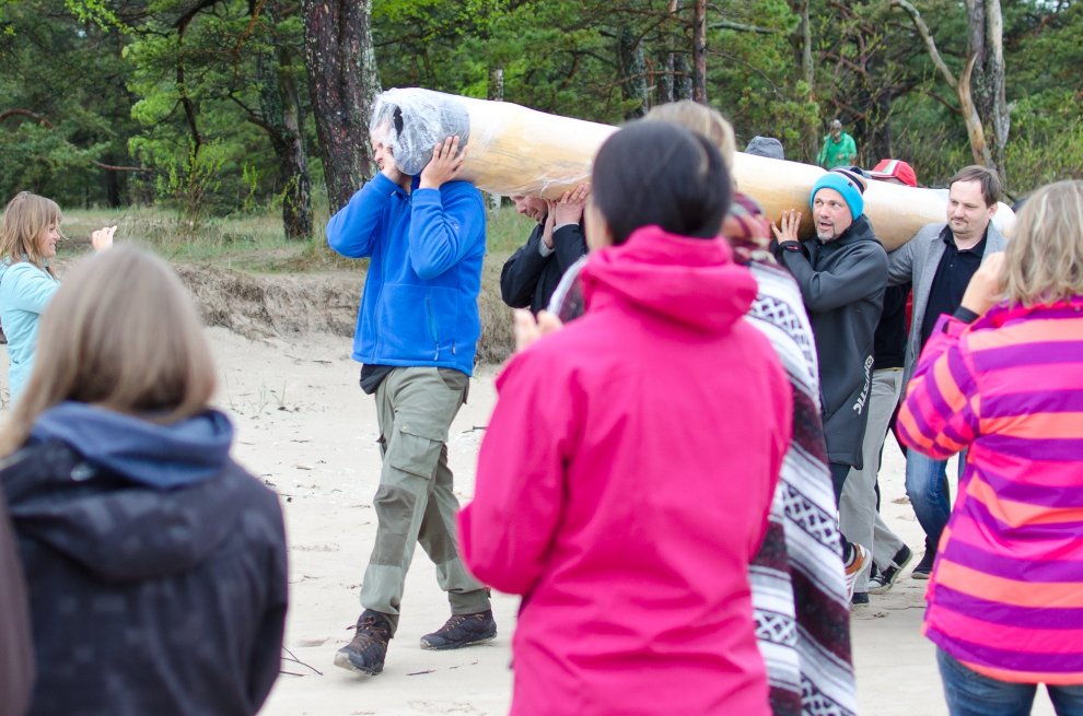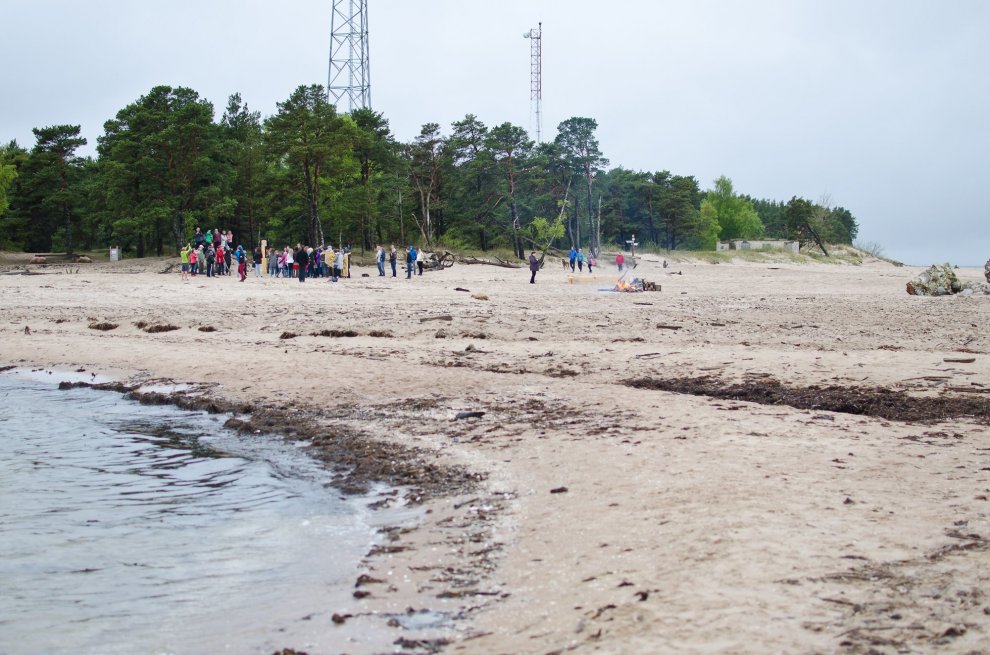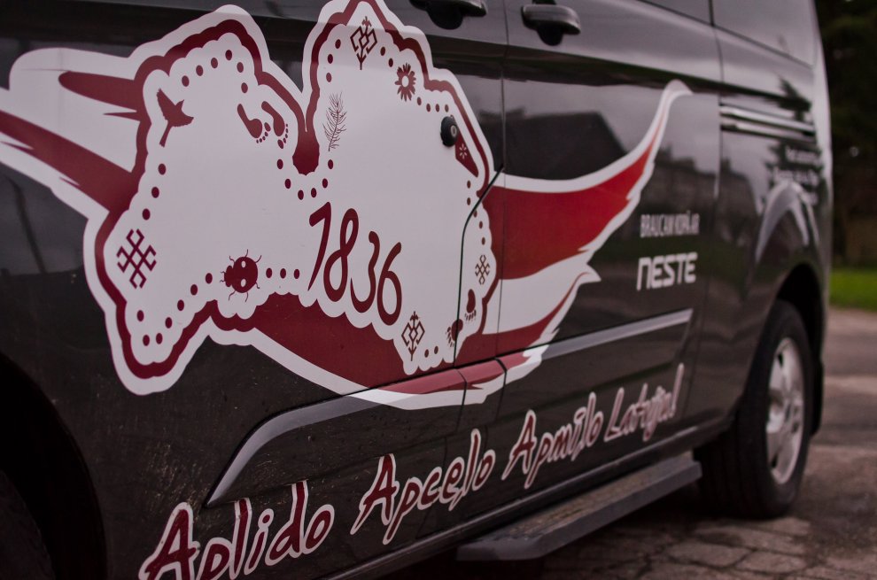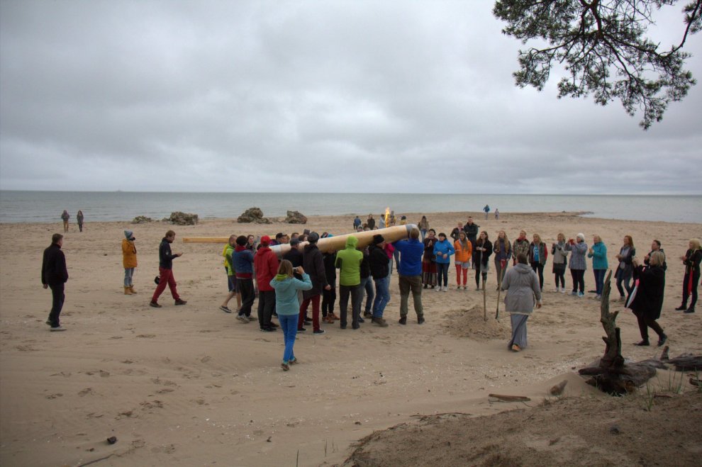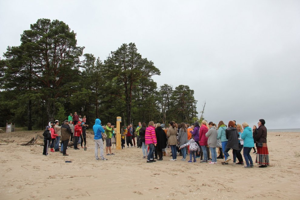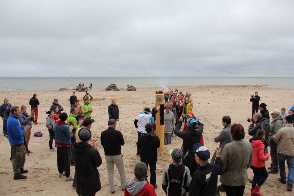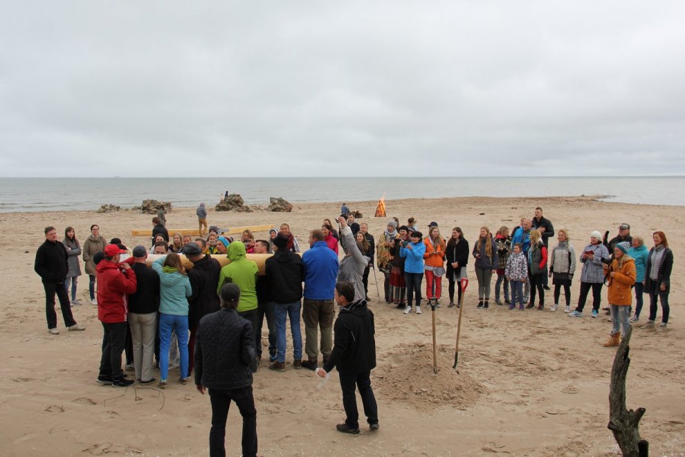 Piedaloties Imanta Ziedoņa fondam «Viegli» un draugiem, tostarp SIA «Kolkasrags» direktoram Jānim Dambītim, daudziem kolciniekiem un viesiem, Kolkasraga liedagā septiņos pēcpusdienā ar daudzu roku piepalīdzību zemē nostiprināja stabu, uz kura ir rakstīts «Aplido, apceļo, apmīļo Latviju» un skaitlis 1836, kas ir Latvijas robežlīnijas kopgarums.