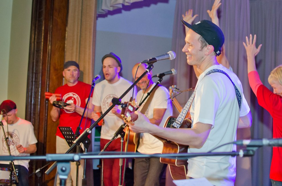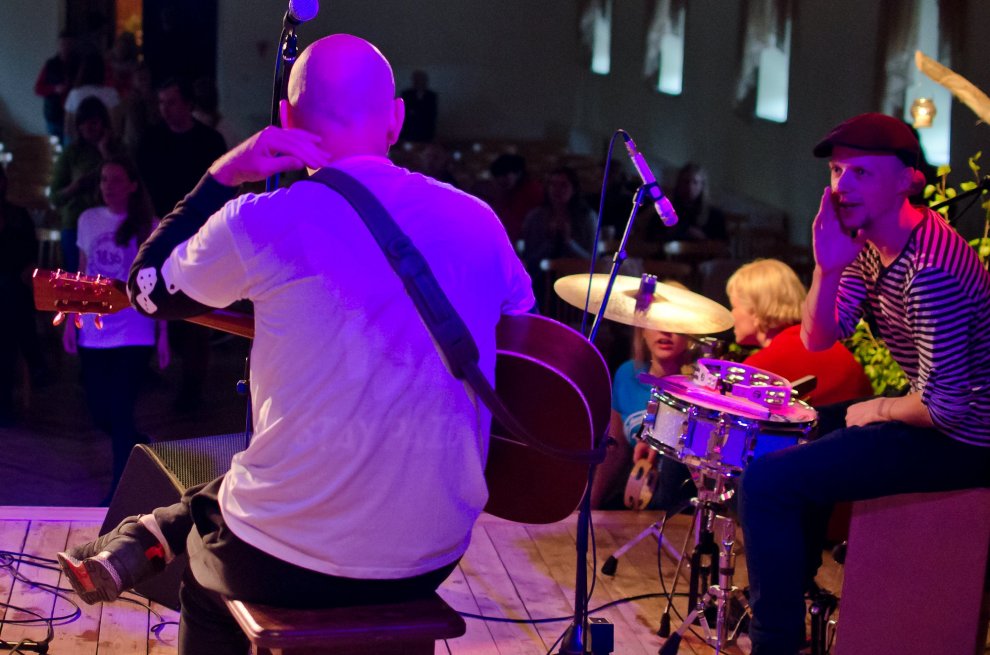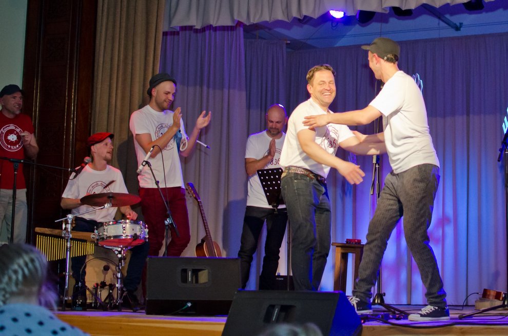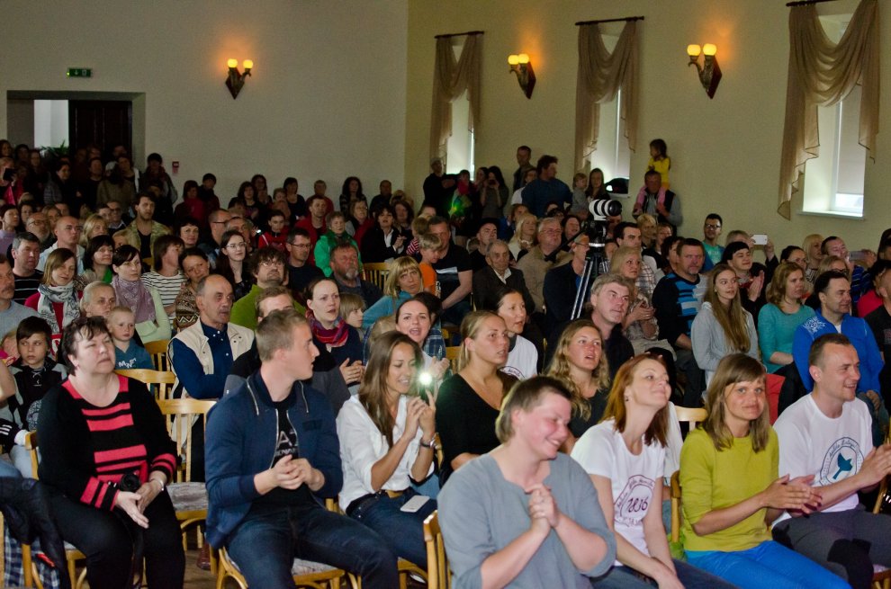 Vakara otrā daļa tautas namu piepulcēja tik pilnu, ka adatai nebija, kur nokrist. Tik milzīgas labas enerģijas caurstrāvotu koncertu sen nebija izdevies piedzīvot, un par to liels paldies Renāram Kauperam ar draugiem! Būtībā visi klātesošie bija reizē dalībnieki un klausītāji, uzstājās daudzi viesi, no kuriem liela daļa bija līdzbiedri fonda divu dienu gājienā no Miķeļtorņa līdz Kolkai.