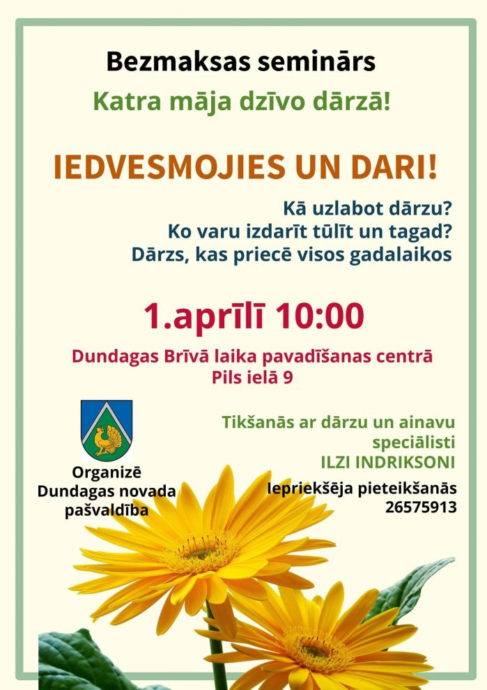 Aicinām uz semināru «Katra māja dzīvo dārzā! Iedvesmojies un dari!» 20.03.2017. plkst. 13.34