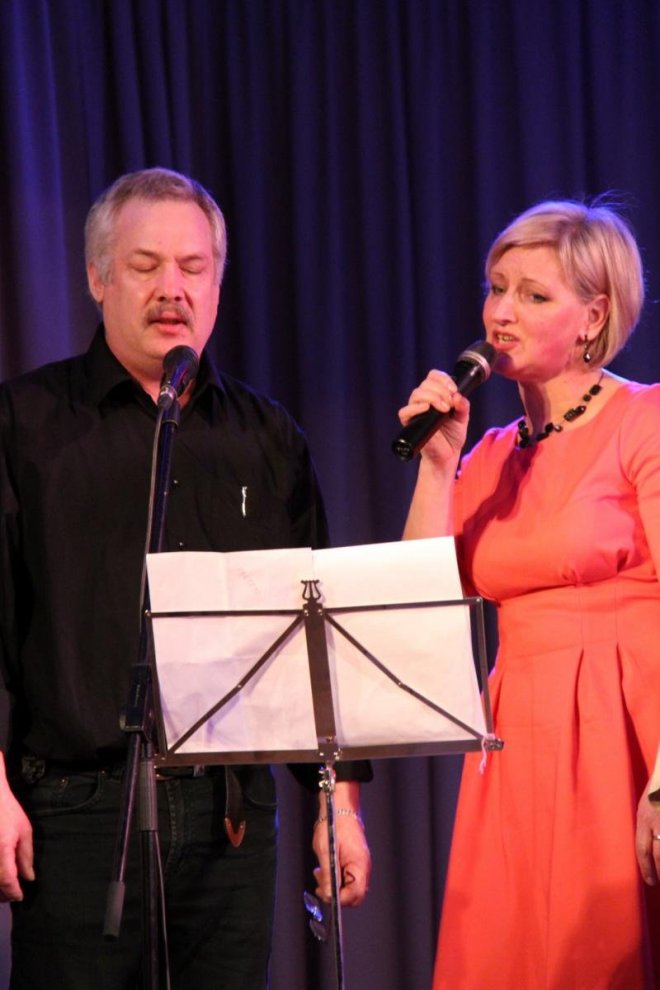 Koncerts vēl nebija pat pusē, kad nopriecājos par neparasti vienoto koptēlu, lai gan dziesmas un to izpildītāji, protams, atšķīrās, un tas allaž slēpj arī sadrumstalotības draudus. Turklāt šoreiz dziesmu vēlamā ievirze, humors, īstenībā ir ļoti grūta. Acīmredzot daļa dalībnieku to bija apzinājušies un tāpēc tai bija gājuši ar līkumu. Jā, bet kāpēc tomēr tik patīkama kopējā noskaņa arī pēc visa koncerta un kāpēc tas šķita aiztraucam vienā elpas vilcienā? Atbilde vienkārša — lieliskas bija abas teicējas, reizē konferansjē, dziedātājas un dejotājas, skeču izpildītājas, muzikālās izpalīdzes... kas tik vēl ne! Dzintra Tauniņa un Evita Ernštreite no pirmā mirkļa publiku aizrāva ar dabiskumu, šarmu, asprātību, nevainojamo saspēli. Evitas plastiskums un simtprocentīga sava tēla izdzīvošana uz skatuves ir apbrīnas vērta un pelna visaugstāko uzslavu. Žēl, ka balsis nevarēja nodot arī par vakara vadītājām.