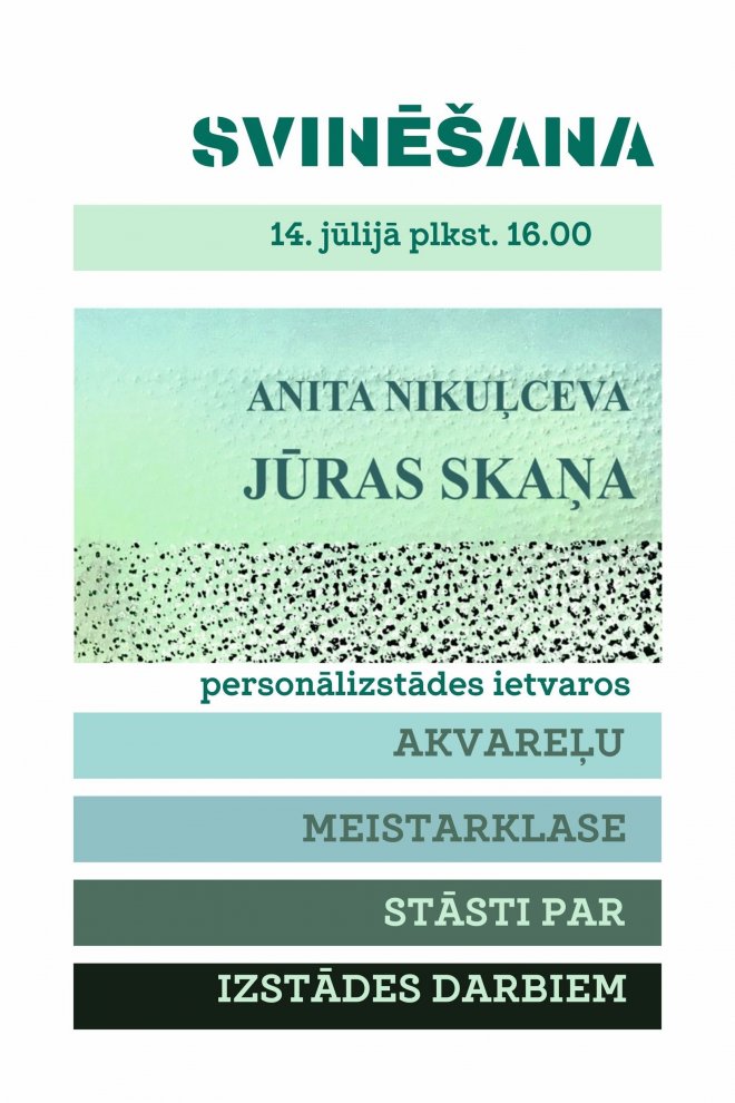 Aicinām jūs uz mākslinieces Anitas Nikuļcevas personālizstādes atklāšanas svinēšanu, kas būs ne tikai vizuāla baudījuma avots, bet arī ikviens tiks aicinās piedalīties akvareļu meistarklasē un dzirdēt stāstus par izstādes darbiem.