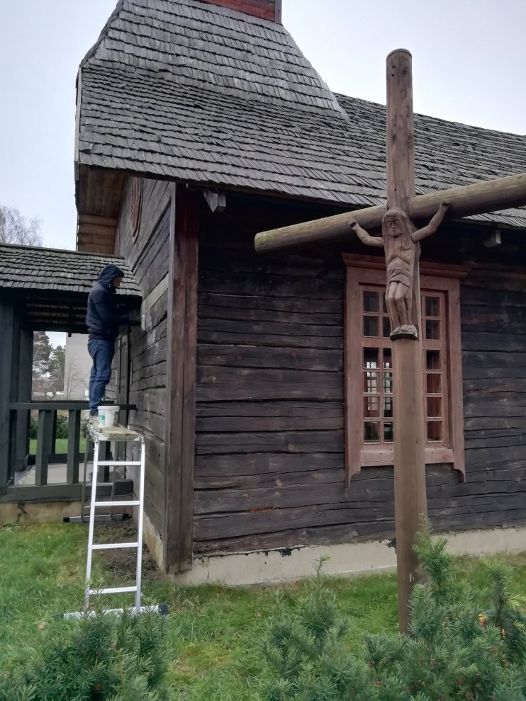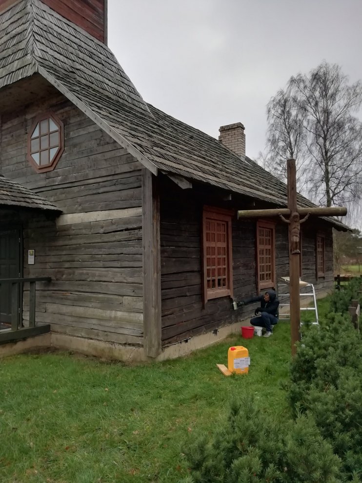 Lai novērstu turpmāku koksnes bojāšanos, ēkas sienu baļķi apstrādāti ar speciālu aizsarglīdzekli — koncentrētu antiseptiķi: fungicīdu un insekticīdu, kas paredzēts koksngraužu kukaiņu likvidēšanai visās to attīstības stadijās koksnē, ar turpmāku profilaktisku aizsardzību pret pelējumu, trupes sēnēm un kukaiņiem. Guļbaļķu apstrādi ar speciālo aizsarglīdzekli profilaktiski paredzēts atkārtot arī nākamajā gadā.