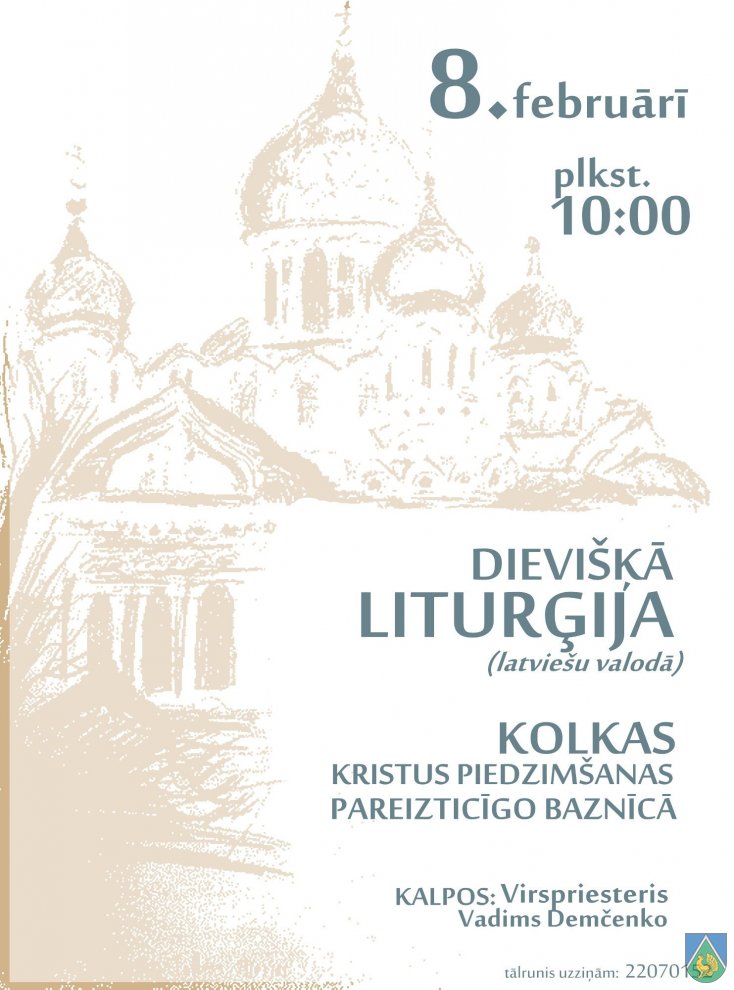 8. II plkst. 10.00 Kolkas Kristus piedzimšanas Pareizticīgo baznīcā dievišķā liturģija latviešu valodā.