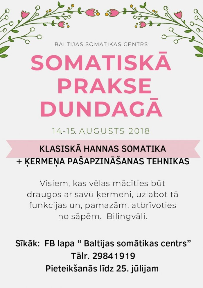 14. augustā plkst. 11.30–18.00 un 15. augustā plkst. 9.30–16.30 Dundagā divu dienu somatiskā prakse.
