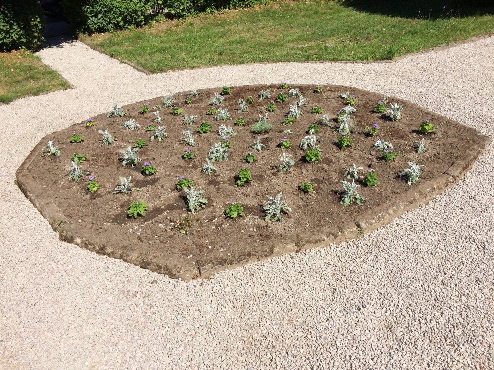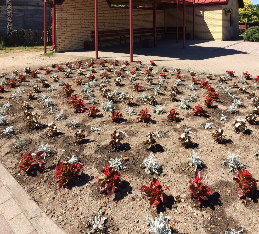 Pēdējās puķu dobes skvērā pie Dundagas pienotavas un centrā pie