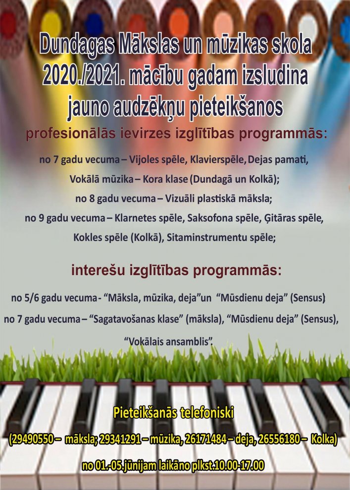 Dundagas Mākslas un mūzikas skola izsludina jauno audzēkņu pieteikšanos 28.05.2020. plkst. 15.46