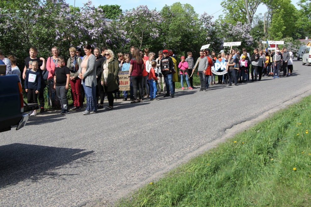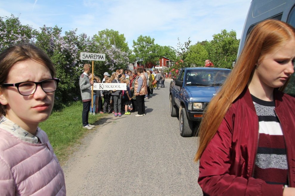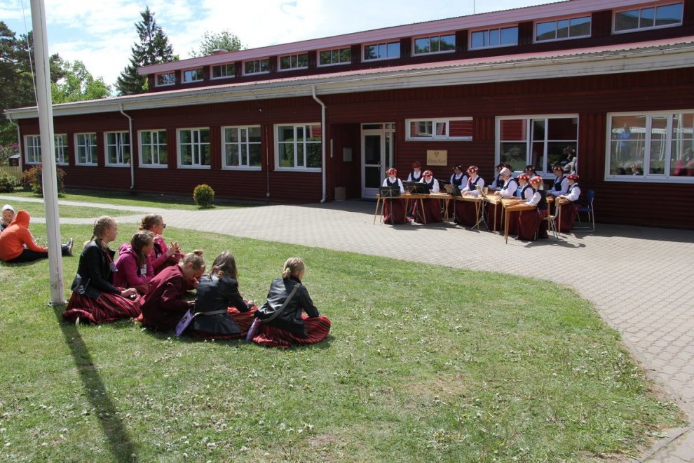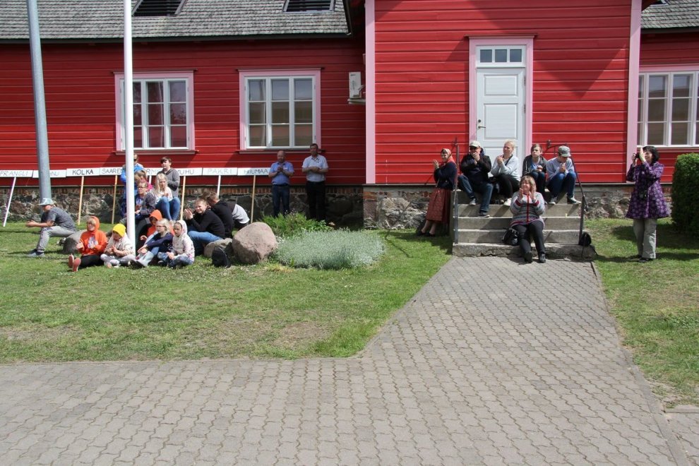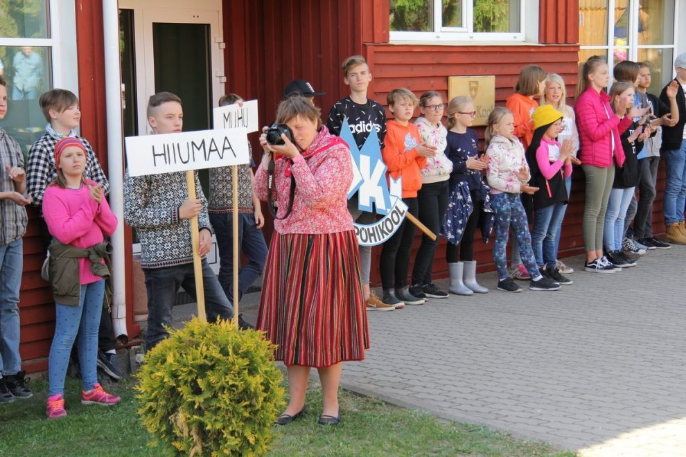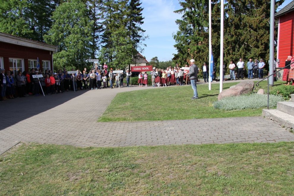 Tūlīt, pēc ierašanās salā, nokļuvām svētku gājiena priekšgalā un devāmies uz Kihnu skolu, kuras pagalmā notika festivāla atklāšana un Kihnu salas karoga uzvilkšana mastā. Kihnu skolai ir liela loma vietējo tradīciju uzturēšanā, skolā mācās 34 bērni 13 pedagogu vadībā. Kā uzzinājām vēlāk — 28 no skolēniem mācās tradicionālus mūzikas instrumentus — vijoli, akordeonu, ģitāru un diatonisko akordeonu. Kihnu skola bija šī pasākuma organizators, kas kopā pulcēja lielus un mazus igauņus no 8 salu skolām.