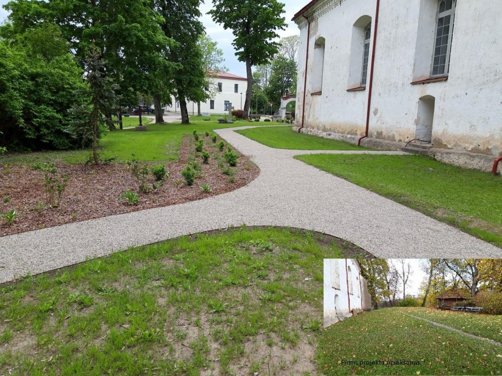 Zālienā izstaigāto, grāvīšiem līdzīgo taciņu vietā tagad ir pastaigāties vedinoši celiņi, sairušo betona kāpņu vietā uzkalna nogāzē, kas ved no sakristejas uz draudzes kanceleju, izbūvētas stabilas kāpnes ar margām. Novecojušo apstādījumu vietā ir izveidotas trīs jaunas apstādījumu kopas – gan funkcionāli, gan sezonāli daudzveidīgas, izplūdušās apbedījumu robežas nostiprinātas ar metāla apmalēm, atjaunoti to stādījumi, notīrīti krusti un pieminekļi. Izveidota bruģēta atpūtas vieta ar soliņiem, jauni soliņi ir arī pie baznīcas ieejas, turpat arī velosipēdu novietne. Visā teritorijā, kur tas bija nepieciešams, atjaunots zāliens.