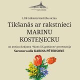 18. jūnijā plkst. 17.00 Latvijas Nacionālās bibliotēkas (LNB) Atbalsta biedrība un Kolkas Tautas nams ielūdz uz tikšanos ar publicisti un rakstnieci Marinu Kosteņecku. Ar rakstnieci sarunāsies LNB Atbalsta biedrības direktore Karina Pētersone. Pasākums notiks Kolkas Tautas namā.