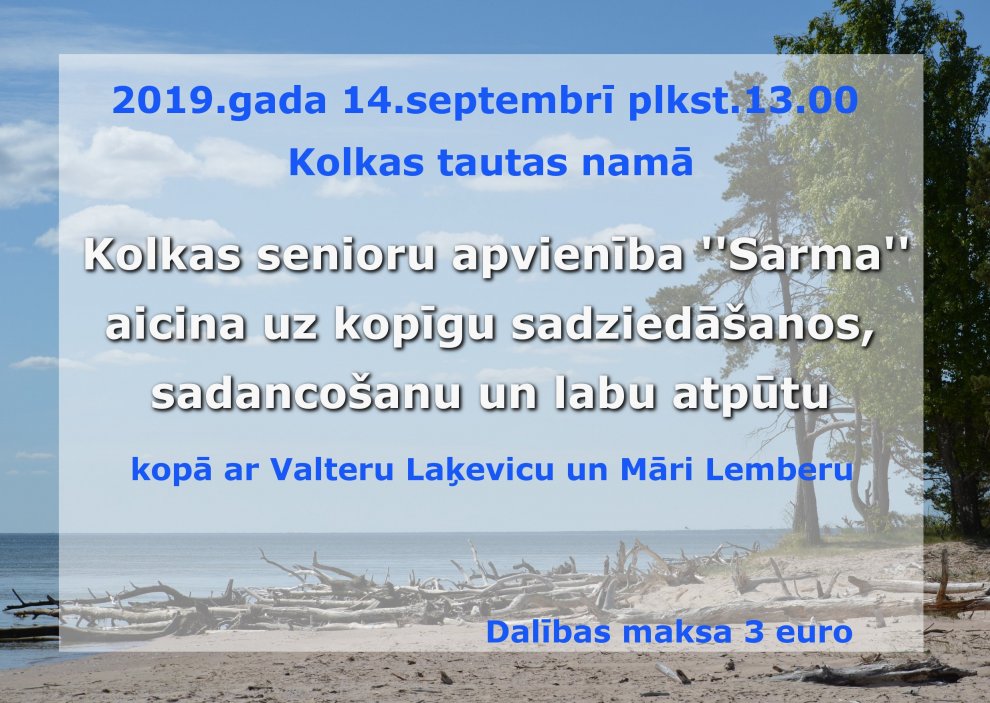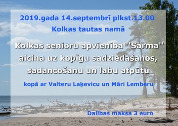 Kolkas senioru apvienība «Sarma» aicina uz atpūtas pasākumu 09.09.2019. plkst. 14.34