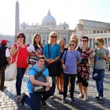 Starp citu, itālieši staigāja ar jakām, rudens zābakiem kājās, mums tā šķita vasara. Zemāk par +22º nebija, Romā pat + 27º. Romu apskatījām, braucot divstāvīgā autobusā. Redzējām Kolizeju, bijām Vatikānā. Svētā Pētera katedrāles priekša brīvdienās ir ļaužu pārpildīta.