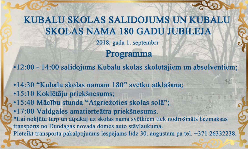 1. septembrī Kubalu skolas salidojums un Kubalu skolas nama 180 gadu jubileja.