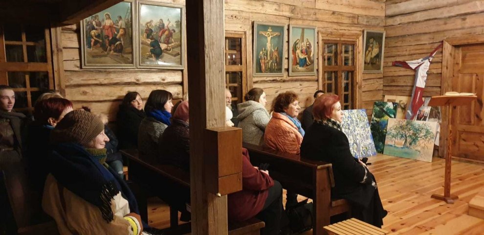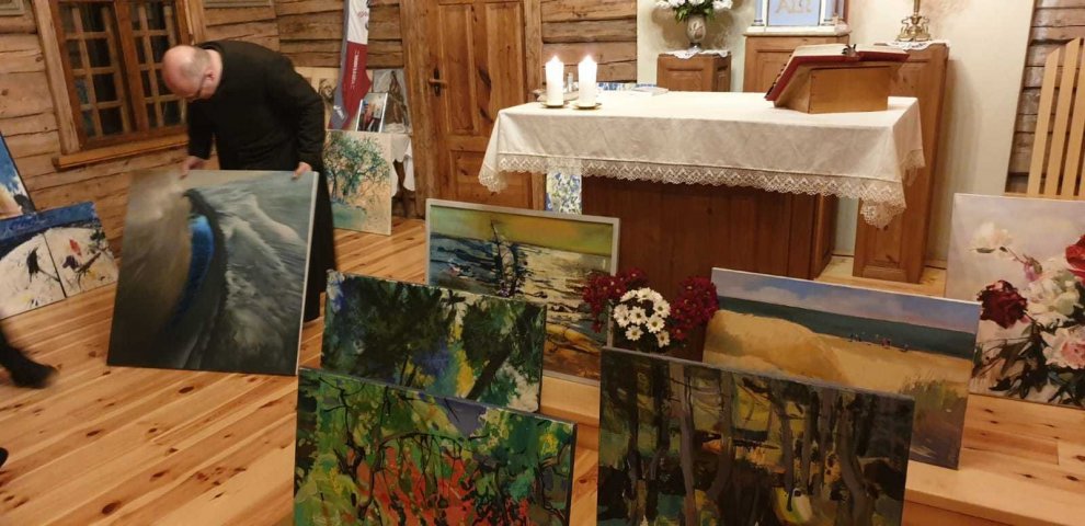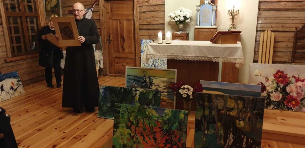 Pēc dievkalpojuma, izskanot maigajām vijoles skaņām, aizkustinošajai trompetes melodijai un sirsnīgajām līvu dziesmām «Laulas» izpildījumā, ieraudzījām ko brīnišķīgu — baznīcu rotāja krāšņas gleznas, kurās katrs varēja ieraudzīt sev kaut ko tuvu, mīļu un pazīstamu. Žilbinošie ziedu motīvi, mūžam mainīgās jūras attēlojums, regate, Mazirbes baznīca, Līvu piekrastes dabas ainavas — katrā no mākslas darbiem atspoguļojās mūsu dzimtās zemes skaistums un unikalitāte, tie pārsteidza, uzrunāja un iedvesmoja! Gleznas rosināja lielu interesi klātesošajos, vairākas tika pie īpašniekiem jau pavisam neilgā laikā, savukārt daļa joprojām pieejamas Kolkas katoļu draudzē un iegādājamas par ziedojumu (sīkāka informācija pa tālr. 29793759). Visi labdarības pasākumā saziedotie līdzekļi gan no mākslas darbiem, gan privātie ziedojumi tiks novirzīti Milleru ģimenei, kas postošajā ugunsgrēkā zaudēja gan pajumti — gadu gaitā pašu celtās mājas, gan visu iedzīvi.