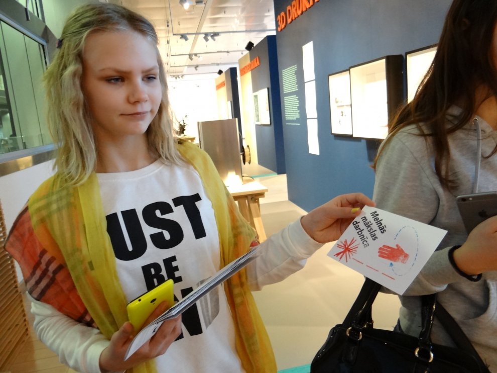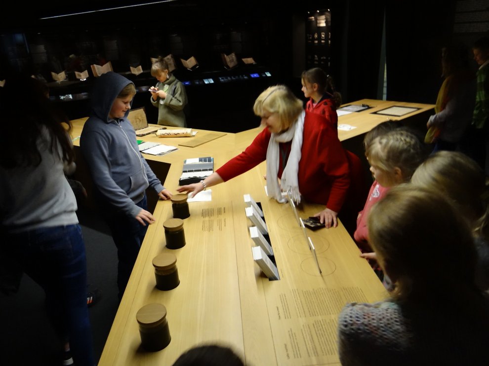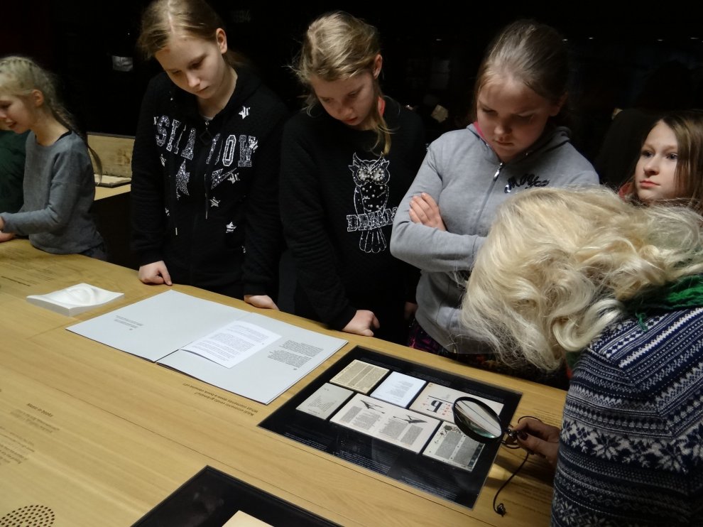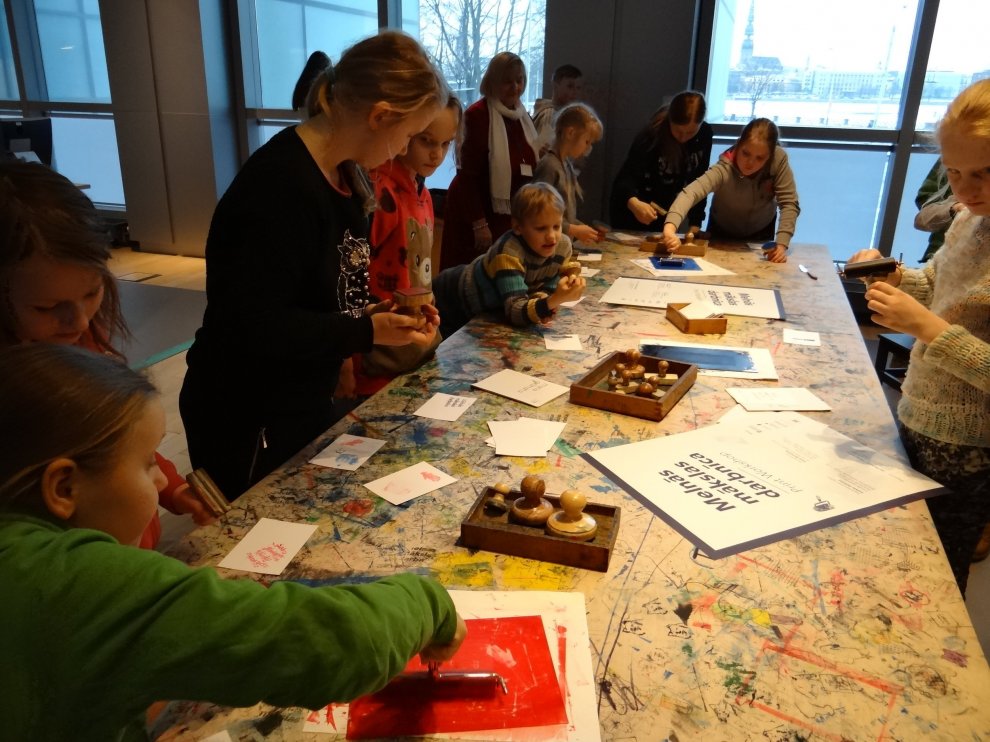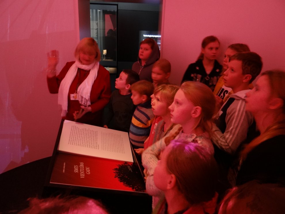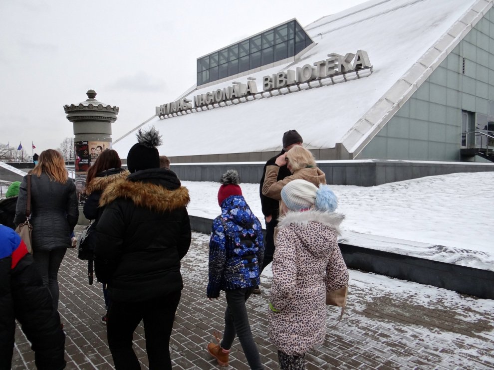 Pēc zoodārza devāmies uz Latvijas Nacionālo bibliotēku. Izstāde Grāmata Latvijā veidota no četrām daļām — Vēsture, Gars, Vara un Maņas. Prieks, ka vārds «izstāde» zaudējis savu seno, garlaicīgo jēgu, jo mūsdienās izstādēs var visu sataustīt, sajust, izbaudīt ne tikai ar acīm, pat sasmaržot. Blakus telpā katrs varēja pamēģināt darboties «Melnās mākslas darbnīcā» un, izmantojot spiestuves tehnikas, izveidot savu pasta kartīti. Pa ceļam uz autobusu vēl paspējām aplūkot filmas «Nameja gredzens» aktieru tērpus.