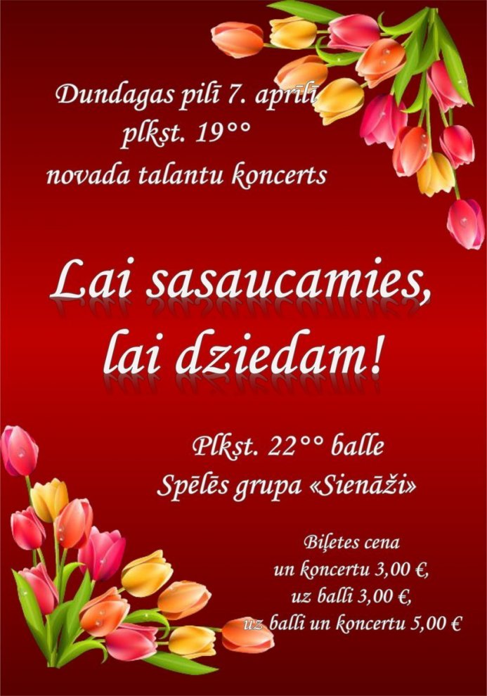 7. aprīlī plkst. 19.00 Dundagas pilī novada talantu koncerts «Lai sasaucamies lai dziedam!».