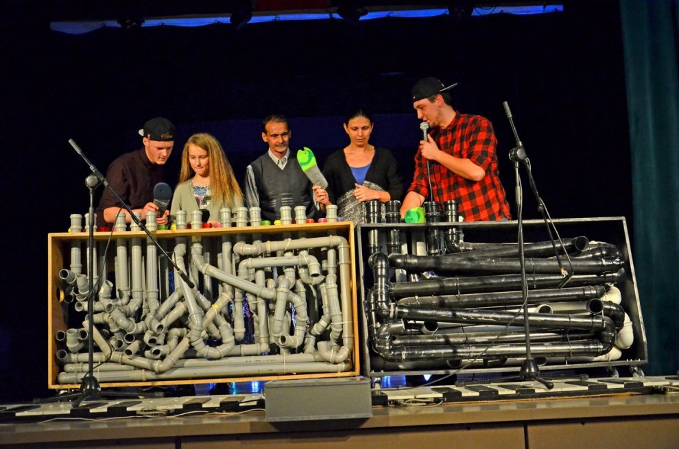 Skatītājiem pārpildītā pils zālē notika Manguļu ģimenes šovs — spēles uz glāzēm, pudelēm, kāju klavierēm un grupas «Santehniķi» spēle uz trubofona — instrumenta, kas izgatavots no santehnikas caurulēm un kuru spēlē ar čībām. Šajos priekšnesumos aktīvi iesaistījās arī skatītāji. Sajūsma un prieks par priekšnesumiem bija neviltots.