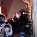 ieeju no ārpuses, pa mazām, šaurām kāpnēm. Mums atļāva pamīt plēšu
