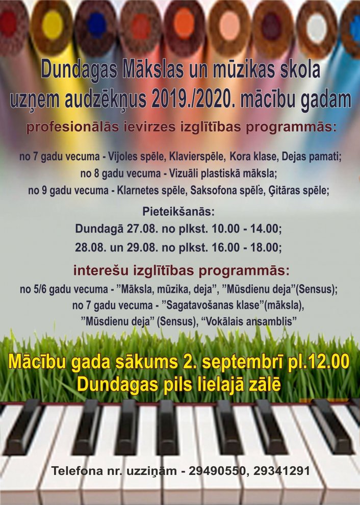 Dundagas Mākslas un mūzikas skola uzņem audzēkņus 2019./20. mācību gadam.