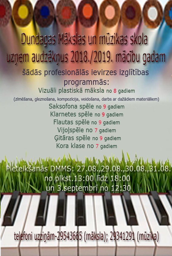 Dundagas Mākslas un mūzikas skola uzņem audzēkņus 2018./19. mācību gadam šādās profesionālās ievirzes programmās: