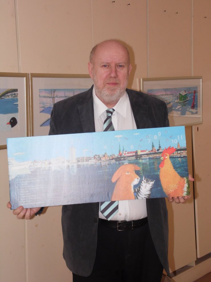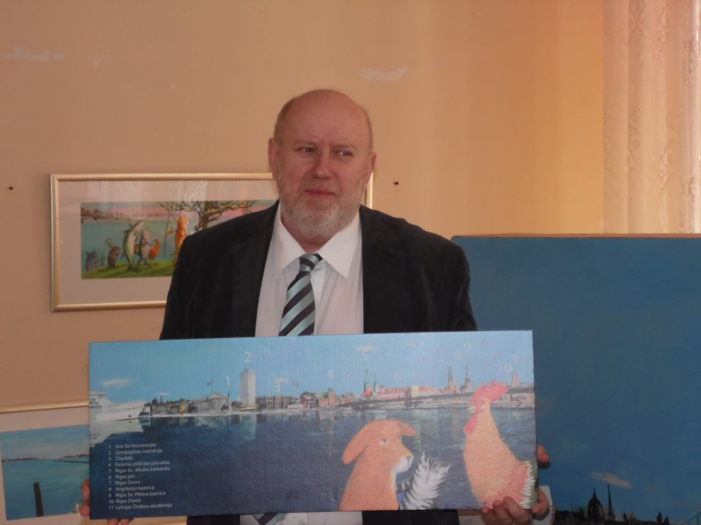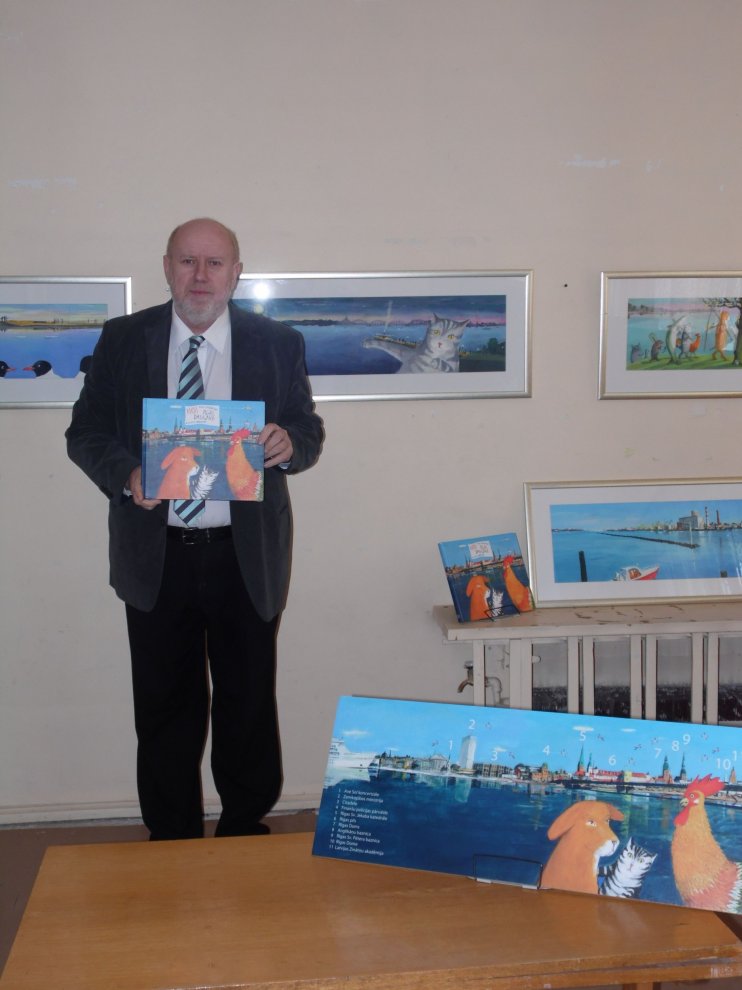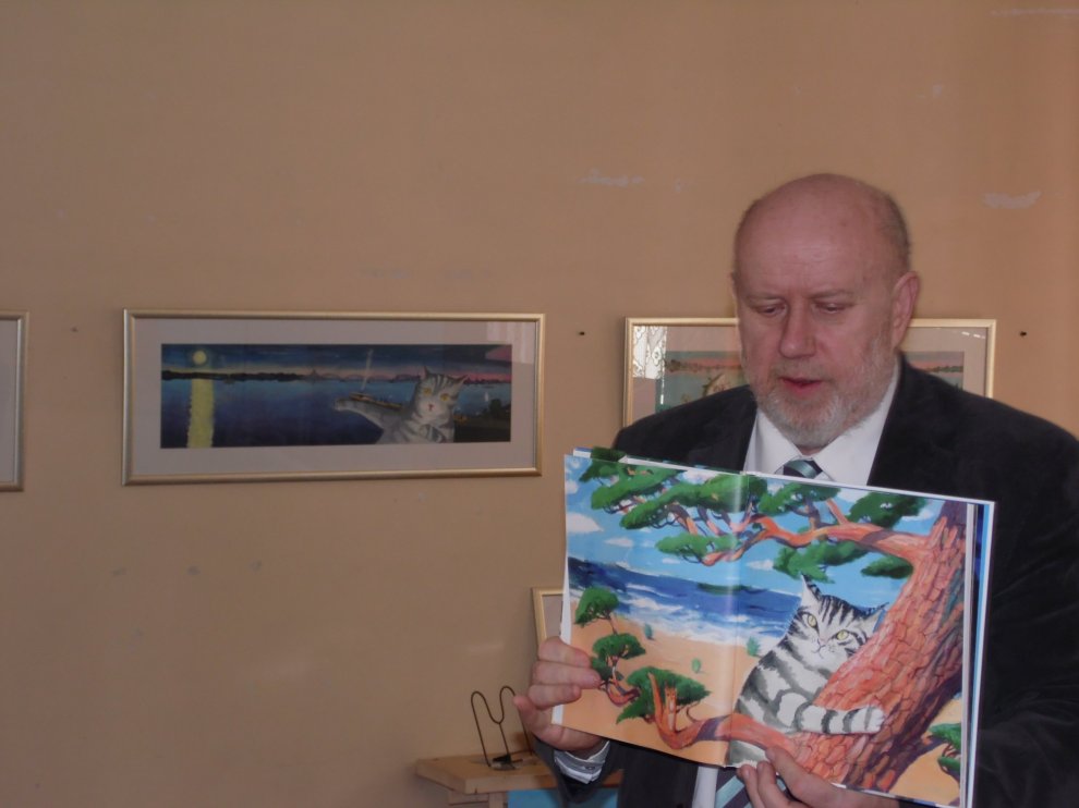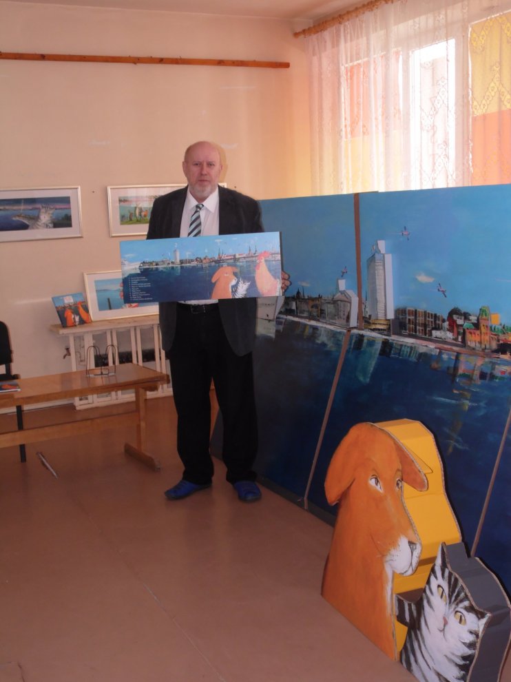 20. IV Dundagas centrālajā bibliotēkā mākslinieks, Latvijas Mākslas akadēmijas rektors Aleksejs Naumovs pagodināja savu ilustrāciju izstādi un tikās ar vidusskolas 11. klases audzēkņiem.