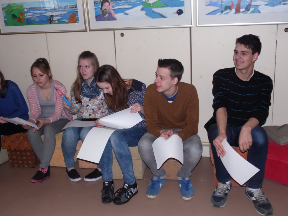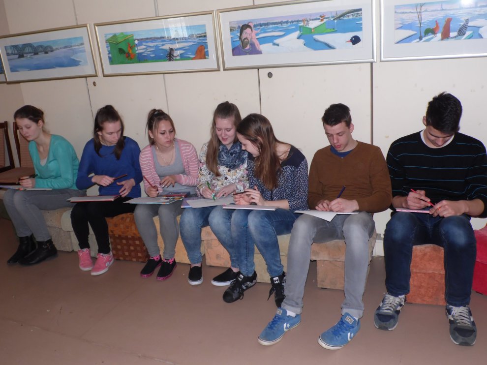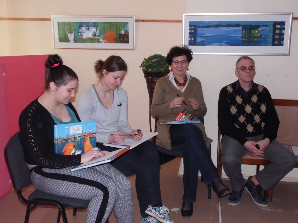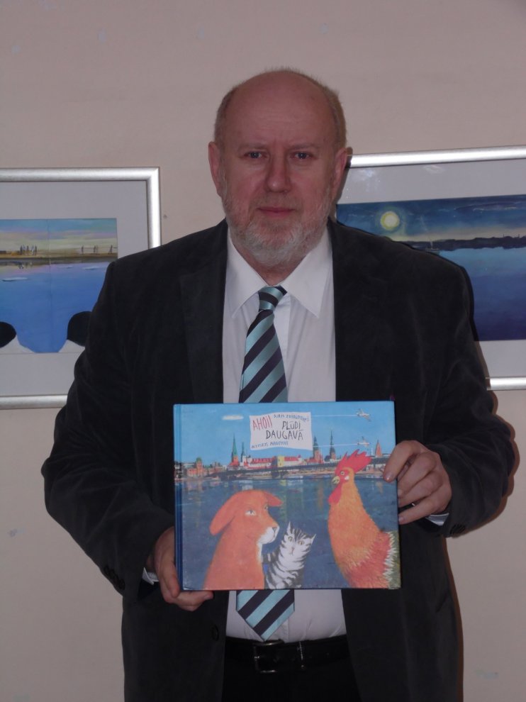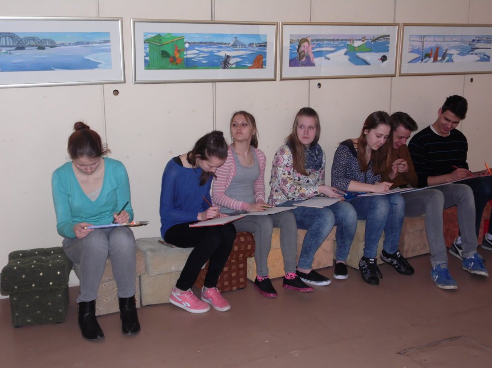 Esam jau rakstījuši par Jura Zvirgzdiņa grāmatas «Ahoi! Plūdi Daugavā» ilustrāciju izstādi Dundagas bibliotēkā, kas aplūkojama līdz mēneša beigām. 20. IV vidusskolas audzēkņiem un vizuālās mākslas skolotājai Sandrai Bražei bija iespēja tikties ar ilustrāciju autoru, profesoru Alekseju Naumovu.