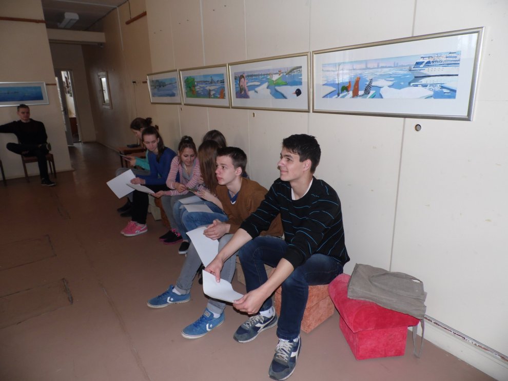 Viesis īsi komentēja katru darbu, uzteicot individualitāti un paslavējot jauno mākslinieku meklējumus. Dzirdot vienu meiteni komentējot klasesbiedres darbu «tev ir gandrīz ka Munkam», profesors piebilda, ka Munkam esot pesimistiskāk. Vēlāk sarunā pie tējas tases mākslinieks teica atzinīgus vārdus par mūsu vizuālās mākslas skolotāju, kas acīmredzami iepazīstinājusi audzēkņus ar ievērojamiem māksliniekiem.