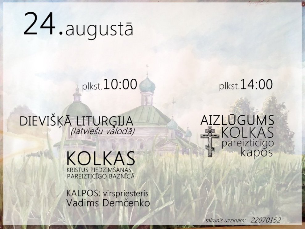 - plkst. 10.00 Kolkas Kristus piedzimšanas pareizticīgo baznīcā Dievišķā liturģija