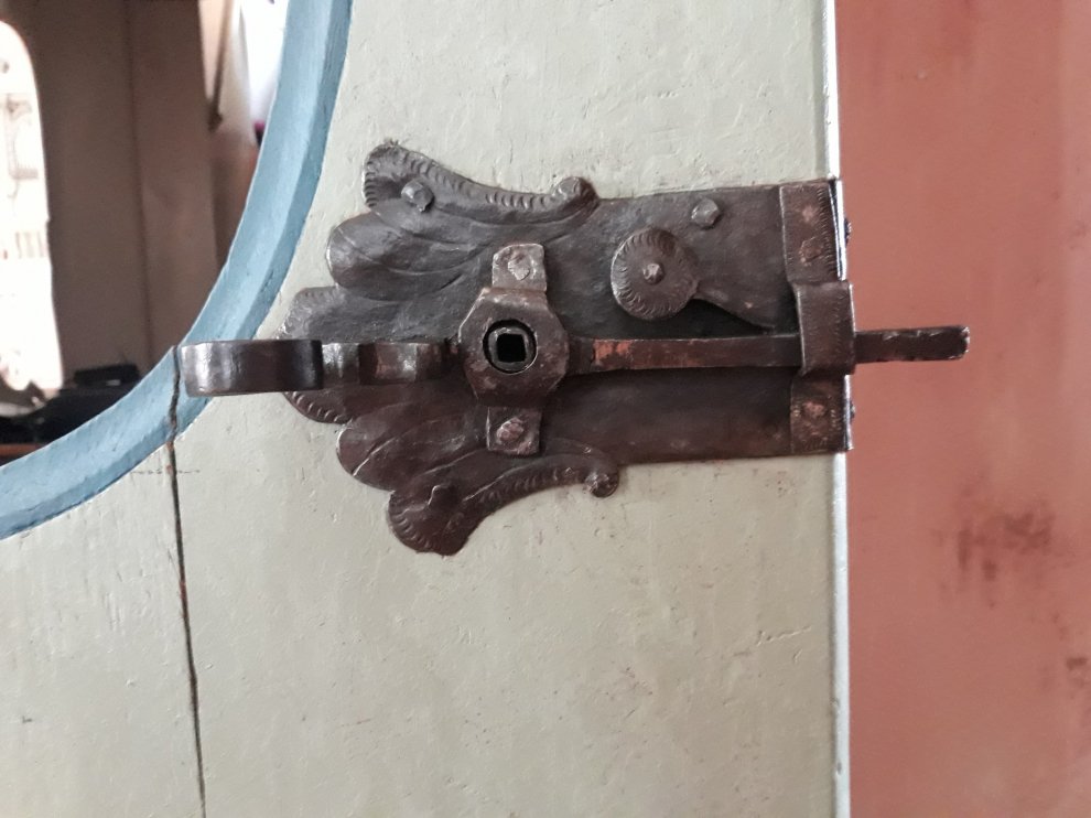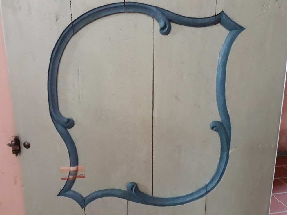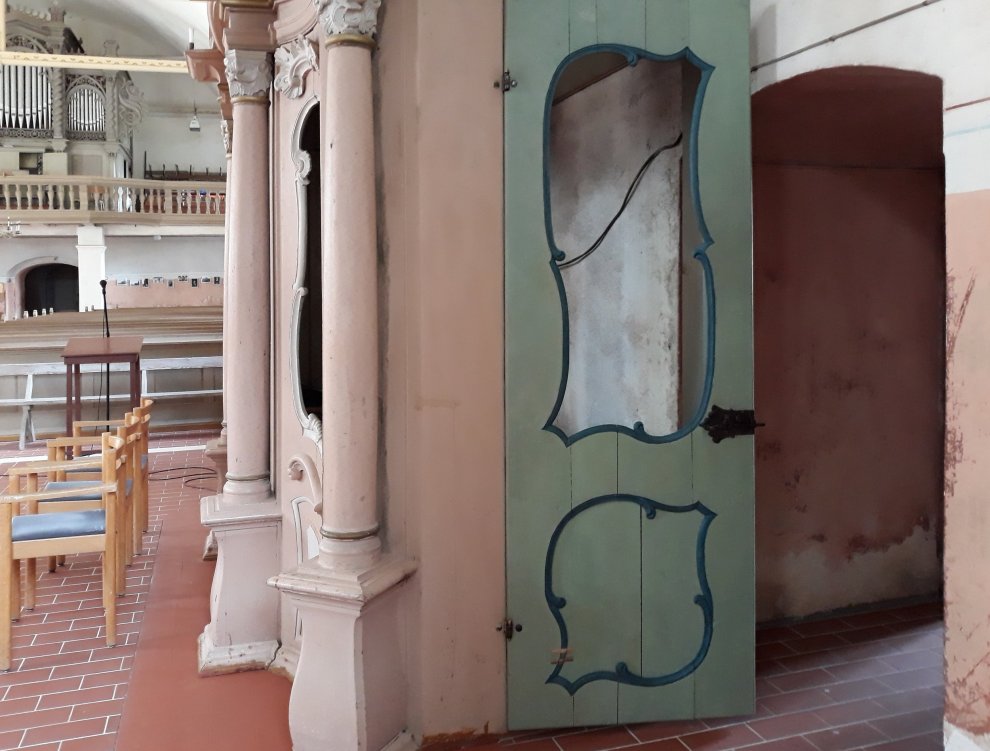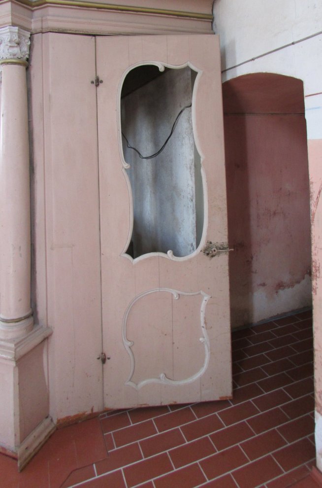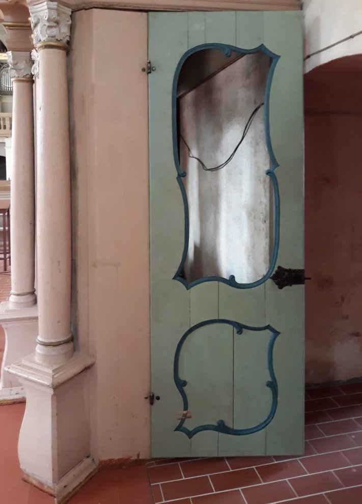 Restaurēts Dundagas luterāņu baznīcas kanceles durvju 18. gs. krāsojums 17.09.2018. plkst. 08.17