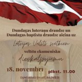 Dundagas luterāņu draudze un Dundagas baptistu draudze aicina Latvijas valsts svētkiem veltītu ekumēnisku dievkalpojumu 18. novembrī plkst. 11.00 Dundagas ev. lut. baznīcā.