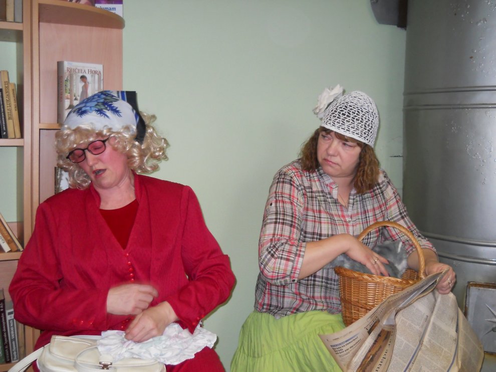25. martā kaļķnieki pulcējās savā bibliotēkā uz muzikāli teatrāliem priekšnesumiem duņdžiņu izpildījumā.
