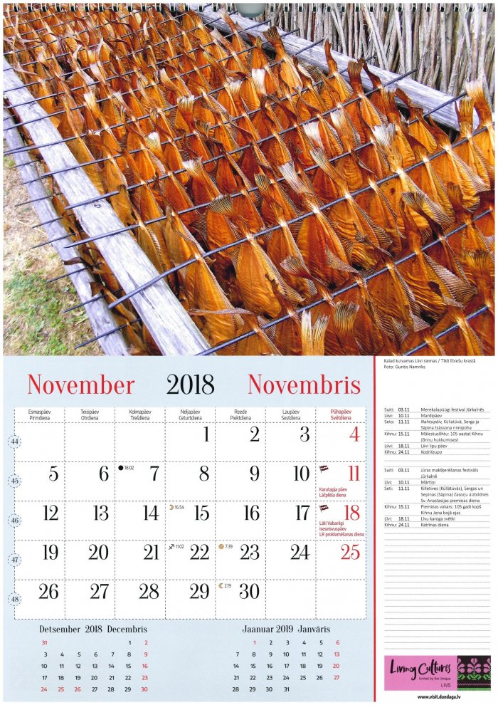 - «UNESCO — tourism» kalendāru, kas ir četru etnisko reģionu: setu, kihniešu, lībiešu un suitu, kopdarbs. Kalendārs atspoguļo šo reģionu pasākumus, etnisko kultūru svinamos svētkus, un tajā ir katram reģionam raksturīgas fotogrāfijas.