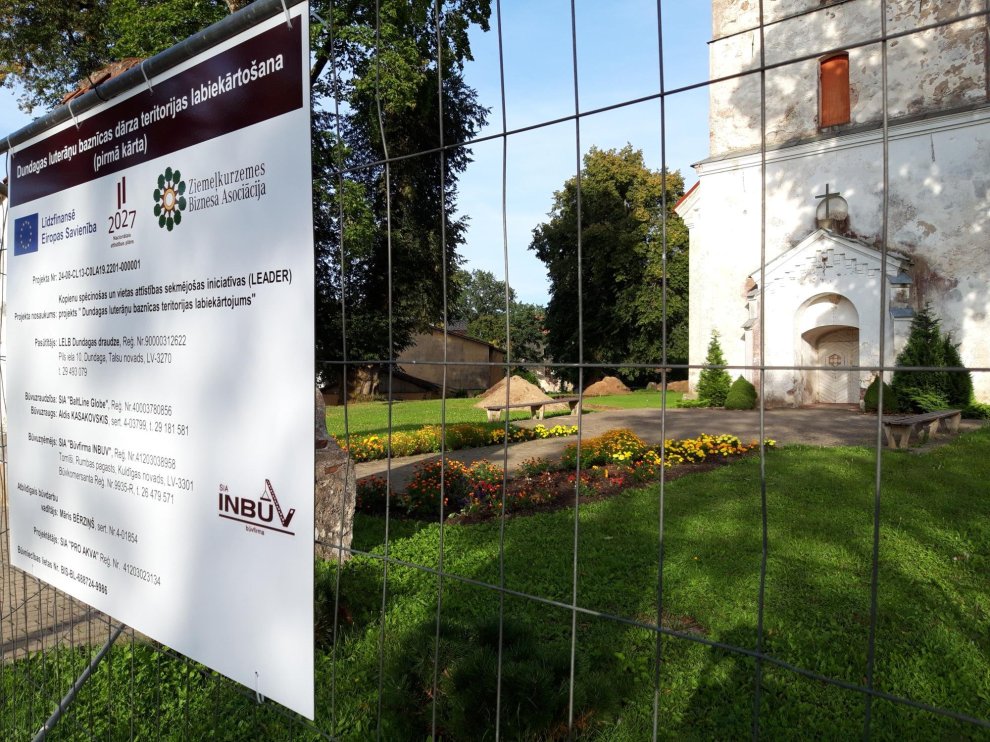 Darbi tiek veikti ES ELFLA un Kopējās lauksaimniecības politikas stratēģiskā plāna 2023.–2027.gadam pasākuma "Kopienu spēcinošas un vietas attīstības sekmējošas iniciatīvas (LEADER) projekta Nr. 24-08-CL13-C0LA19.2201-000001 - ”Dundagas luterāņu baznīcas teritorijas labiekārtojums” ietvaros.