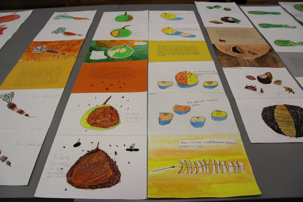 Ar pamatojumu izvēlēties konkrētu dabas objektu padziļinātākai pētīšanai, bija katra audzēkņa pirmais uzdevums. Kas tik netika pētīts! Kartupeļi ar visiem lakstiem, burkāni, bietes, paprika, ķirbis, āboli, ozola zīle, tomāts, sīpoli u. t. t. Darba apjoms katram audzēknim bija sešas A4 lapas, no kurām vienu lapu aizņēma radošā procesa apraksts. Pilnveidojot prasmes uzmanīgi vērot, saskatīt dabas objekta vizuālās vērtības, attēlot tās analītiskos zīmējumos un gleznojumos, paralēli bija arī jānoformulē savas domas un sajūtas par darba gaitu. Veidojās ļoti interesanti un saistoši teksti, kas atklāja bērnu plašo fantāziju.